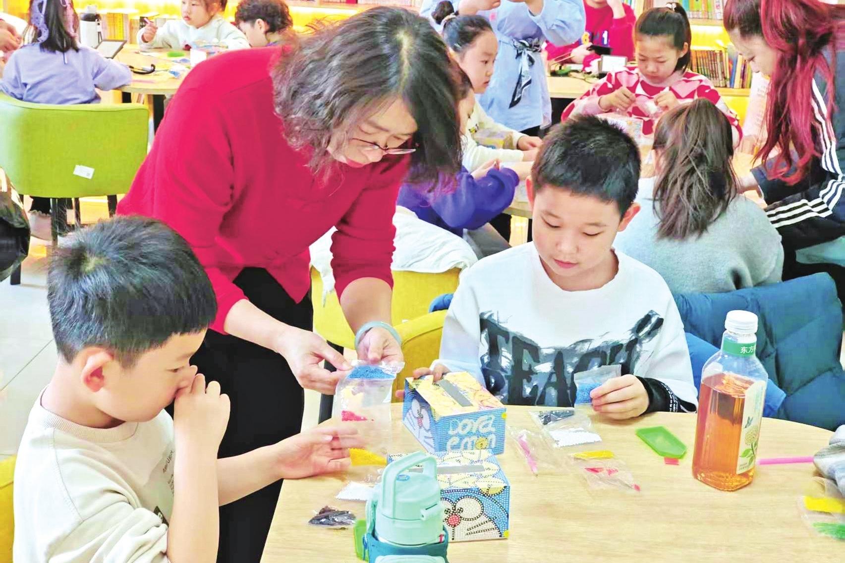 近日,海勃湾区滨河街道滨河社区新时代文明实践站开展了“‘点’钻成画 ‘点’亮童年”亲子手工制作活动。活动中,在志愿者的指导下,孩子们将一颗颗“小钻石”镶嵌到画纸对应的位置上,不一会儿就制作出一幅幅色彩斑斓的点钻画。