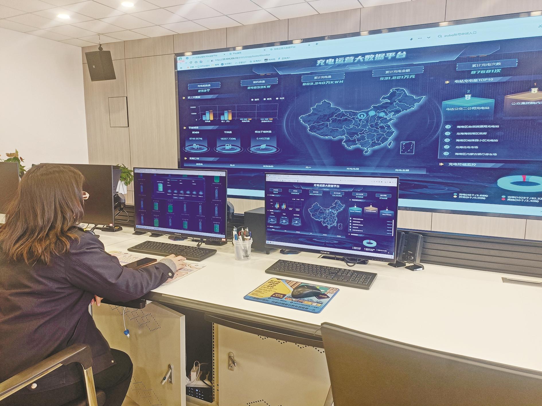 乌海公交汽车租赁服务有限责任公司自主研发并成功搭建了集监、控、管、维于一体的狮城充电运营大数据平台。平台可以实时监控全市充电站的运行状态,包括充电桩的使用率、故障率、充电量等数据,为用户提供更加便捷、智能的充电服务。(刘春霞 摄)