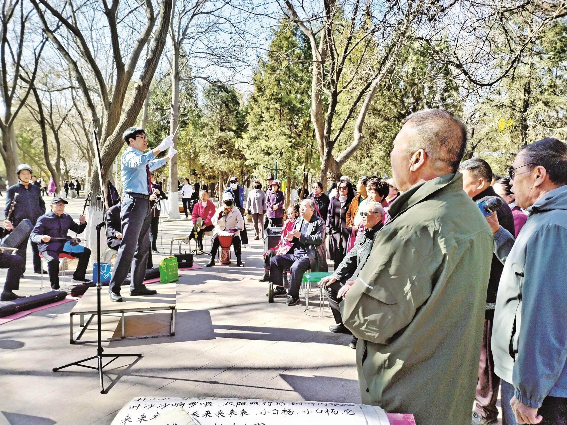 着眼于满足人民日益增长的精神文化需求,我市不断夯实文化事业基础,大力扶持文艺队伍发展,全力促进群众文化事业繁荣。图为在市人民公园,歌唱爱好者以歌声歌颂新时代。