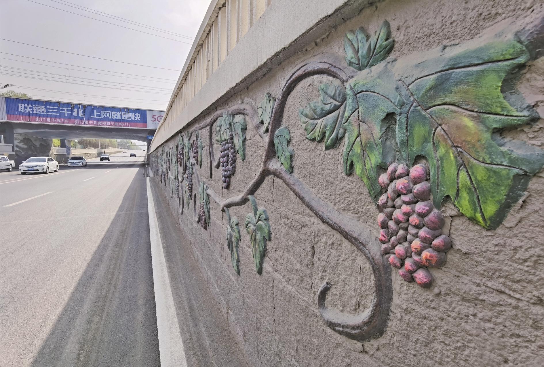 记者从海勃湾区园林绿化服务中心了解到,该中心先后对建南桥、海北桥、林荫东桥等6座桥开展桥洞文化建设。设计时依托现有基础,结合墙体、栏杆实际结构,采用喷砂、雕刻、泥塑等艺术工艺装饰,融入葡萄、岩画等地方文化特色,以银灰白、深棕、土黄、明黄色为主色调,打造出具有文化底蕴的立交桥长廊。海北桥以“葡萄美酒”为主题,海达东桥以“大漠苍穹”为主题,建南桥以“书法之城”为主题,林荫东桥以“徽韵”为主题……