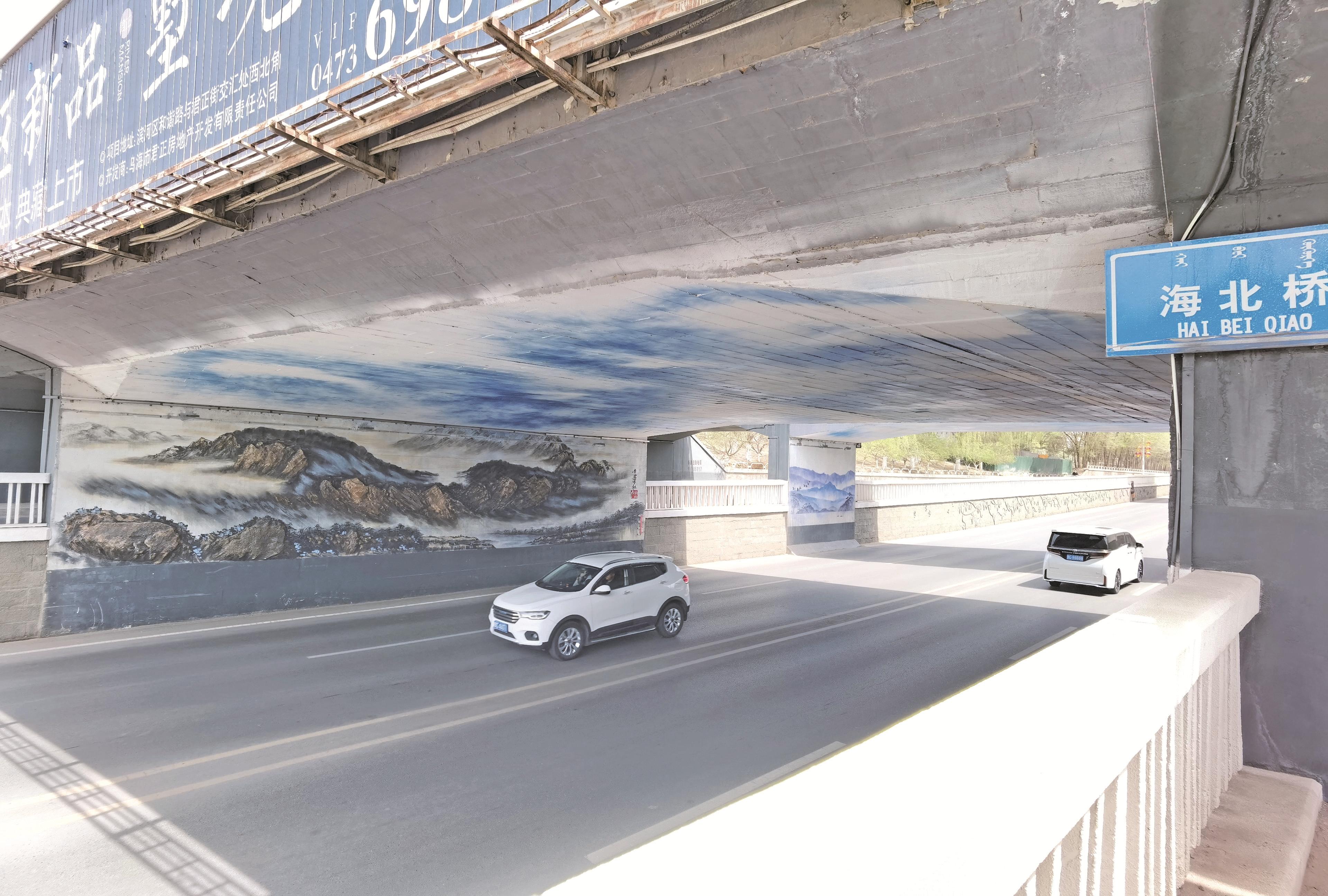 喧嚣的城市中,当颜色单调、枯燥乏味的桥台、桥墩、桥体、桥洞披上多姿多彩的“外衣”,无论是久居乌海的市民,还是外地游客,都会被别具风格的墙绘、浮雕、涂鸦所吸引。