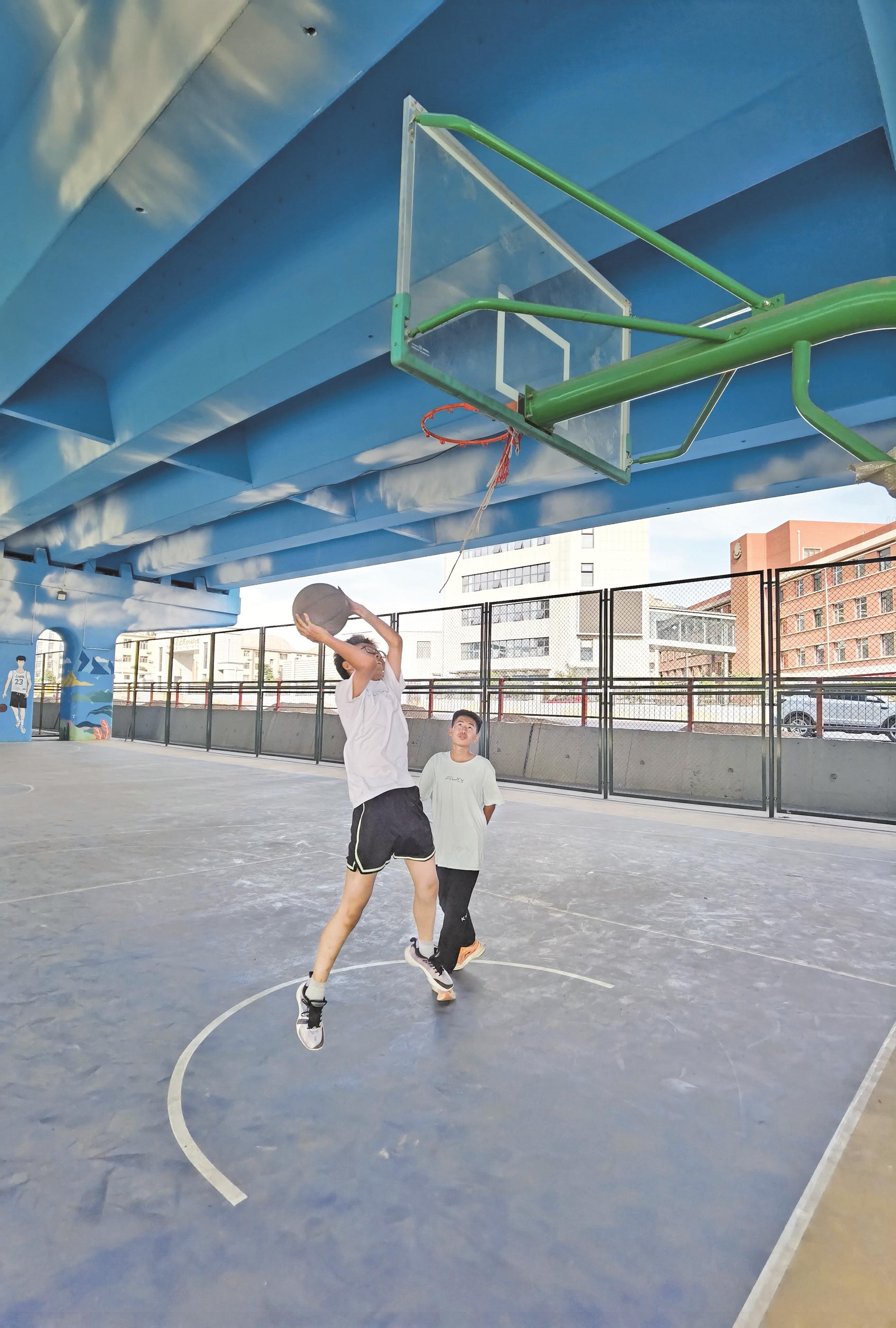 这座公园就是一个典型的利用桥下空地建设的口袋公园。该园由南至北呈带状分布:最南侧有广场、景观花坛、艺术廊架,让人们在美景中流连忘返;中间城市道路两侧的空地被建成停车场,方便人们停放车辆;路北侧的桥下建有笼式足球场、街头篮球场、滑板场,人们在这里可以尽享运动的酣畅淋漓……附近居民陈立好指着公园东侧的栅栏介绍,这里的地面落差比较大,稍不留神就会摔跤,相关部门很快安装了护栏,并在中间设置了出入口和台阶,方便住在东面的居民来游园、锻炼。“我儿子特别喜欢打篮球,以前总要到2公里外的一个篮球场,距离远不说,我也常担心安全问题。”陈立好说,“自从桥下公园建好后,篮球场离家很近,孩子出来玩,特别方便,我们也特别放心。”