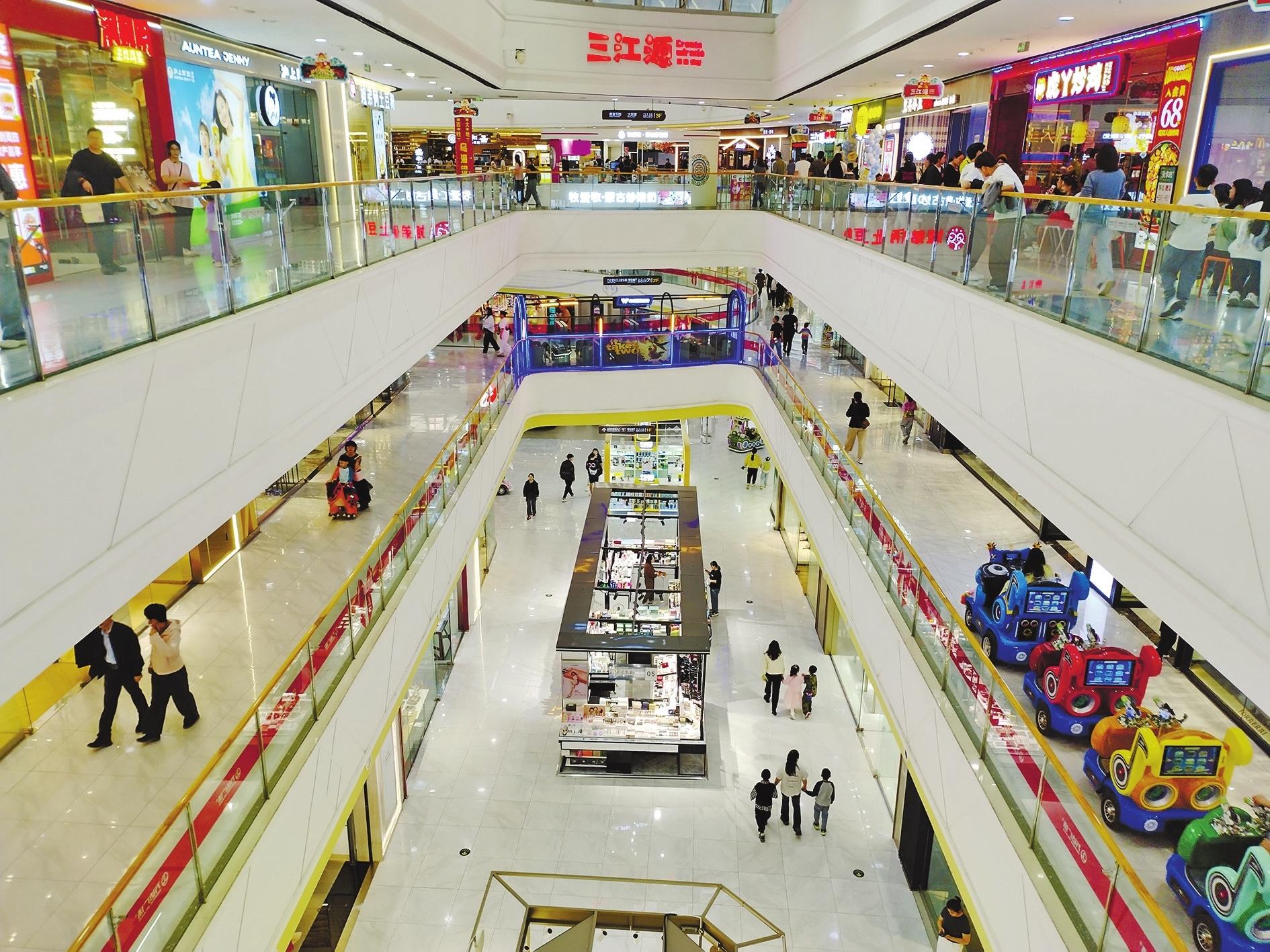 随着各项以旧换新政策落地落实和促消费活动的加力、便民服务举措的助力,我市消费潜力加速释放,消费热度持续升高,消费市场供需两旺。图为4月19日消费者在乌海万达广场逛街购物,享受周末生活。(肖传军 摄)