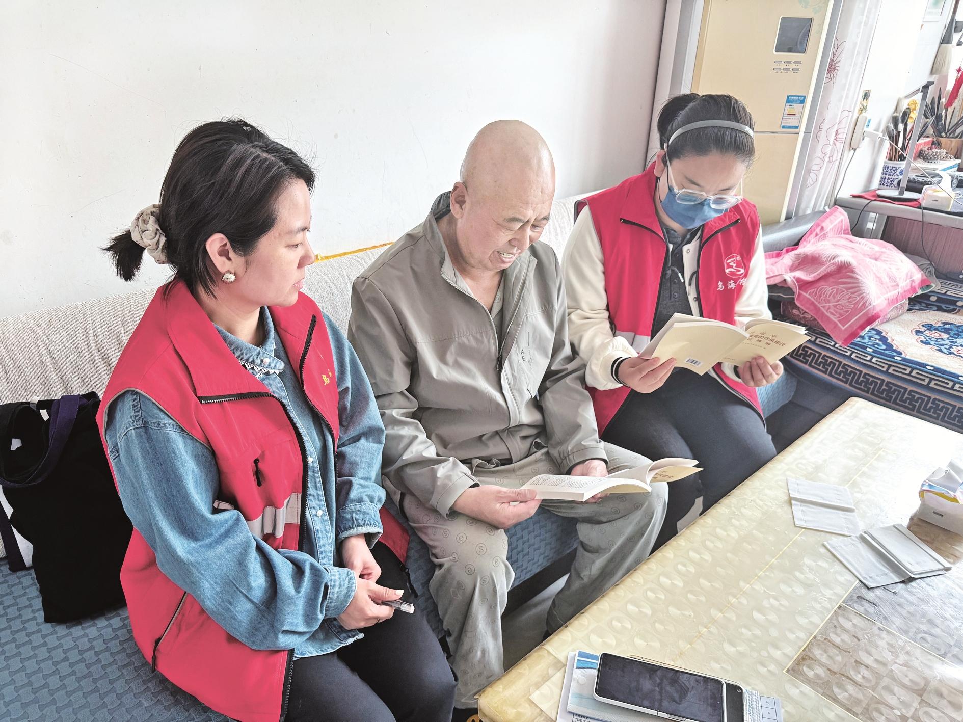 4月17日,海勃湾区海北街道长青东社区方兴家园小区党支部以送学上门的形式,为行动不便或无法自行学习的老党员送去学习资料,确保老党员不缺课,不让任何一名党员在教育学习的过程中掉队。 (陈洋 摄)