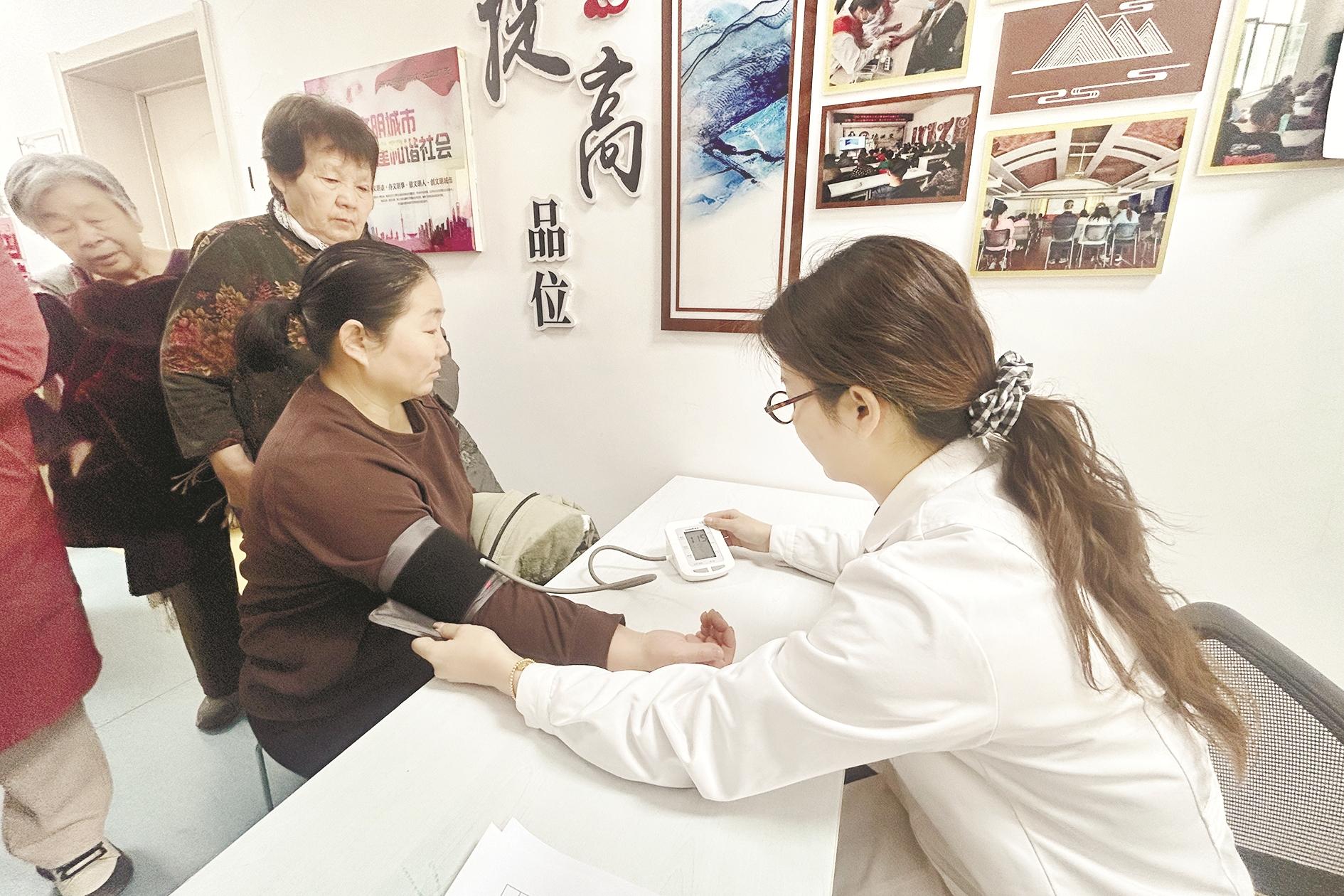 近日,海勃湾区新华街道新海社区联合市妇幼保健院开展了爱心义诊进社区活动。医务人员为辖区居民群众测血糖、量血压、做B超、把脉问诊等,并为患有常见慢性病的居民提出指导意见。活动提高了辖区居民的健康水平,增强了居民保健意识。 (黄建飞 摄)