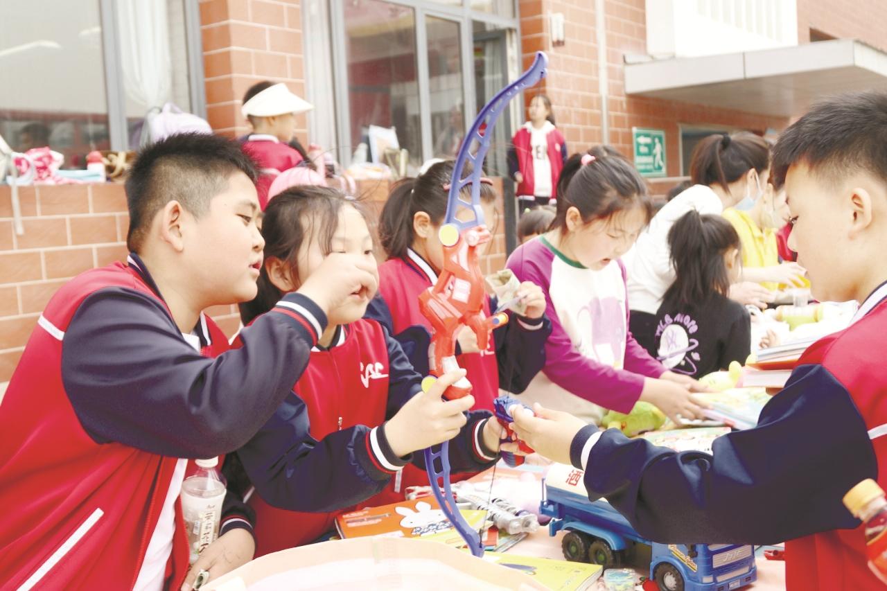 许多学生不仅自己摆摊卖东西,还时不时地跑到其他摊位上购买物品,张曦月就是其中的一个。“在销售物品中不仅锻炼了沟通能力,增长了知识,还可以用赚来的钱帮助别人,很有意义。”张曦月说。