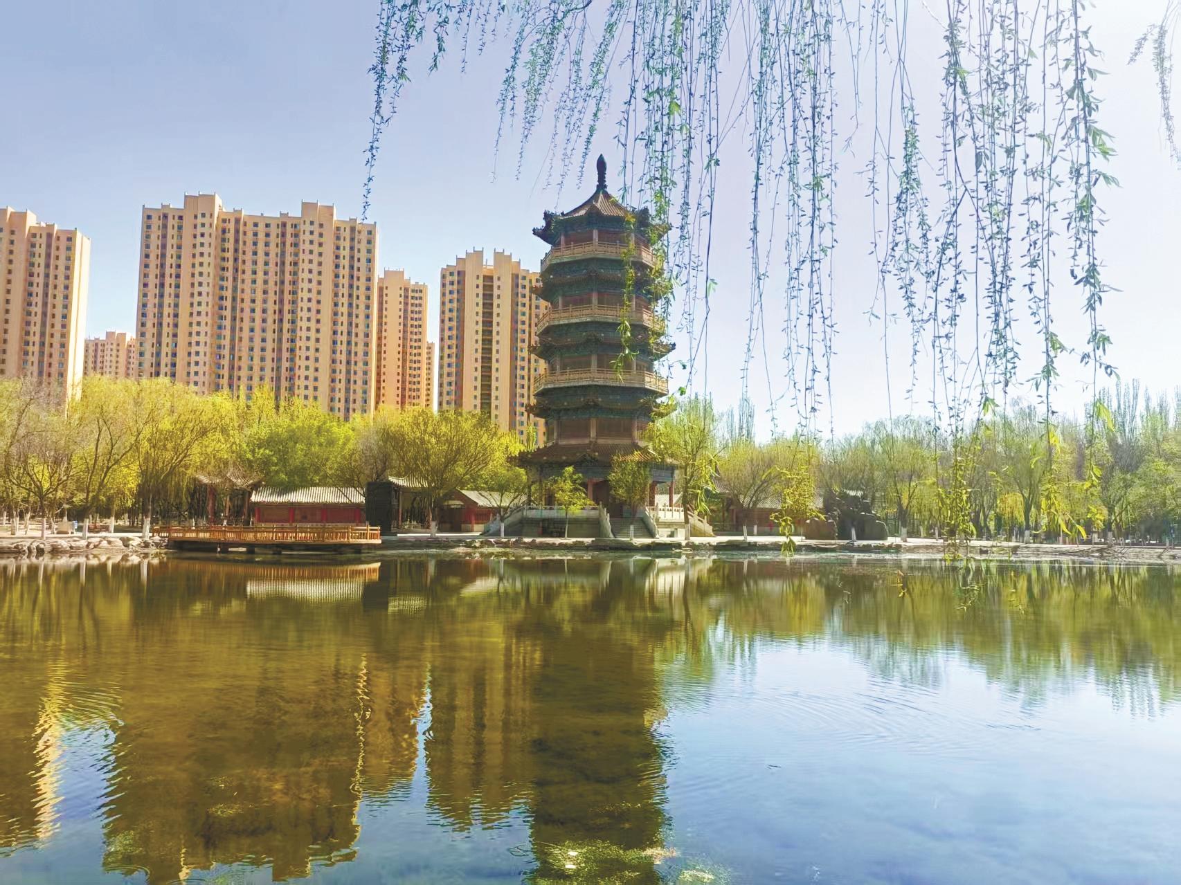近年来,我市生态建设成效显著,精细化打造城市街角口袋公园200余个,城市建成区绿化覆盖率达43%,人均绿地面积19.5平方米,市民实现推窗见绿、出门入园。图为春光里的青山翰墨园一角。(刘春霞 摄)