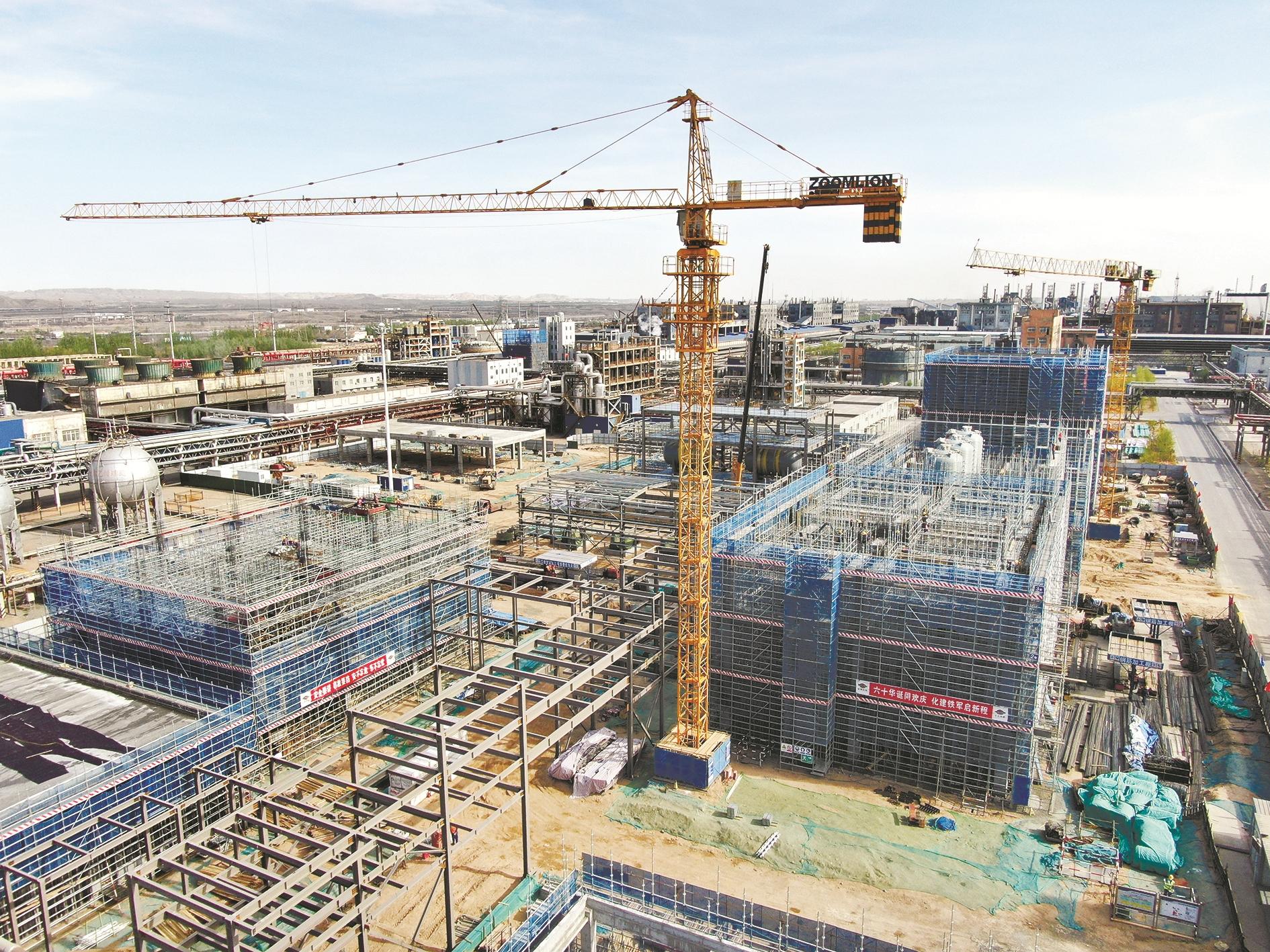 近日,内蒙古宜化化工有限公司悬浮法聚合装置能效提升改造项目建设现场,塔吊林立、机器轰鸣,各类施工车辆穿梭作业,建设者抢工期、赶进度、保质量,加快推进项目建设,力争项目早建成早投产。
