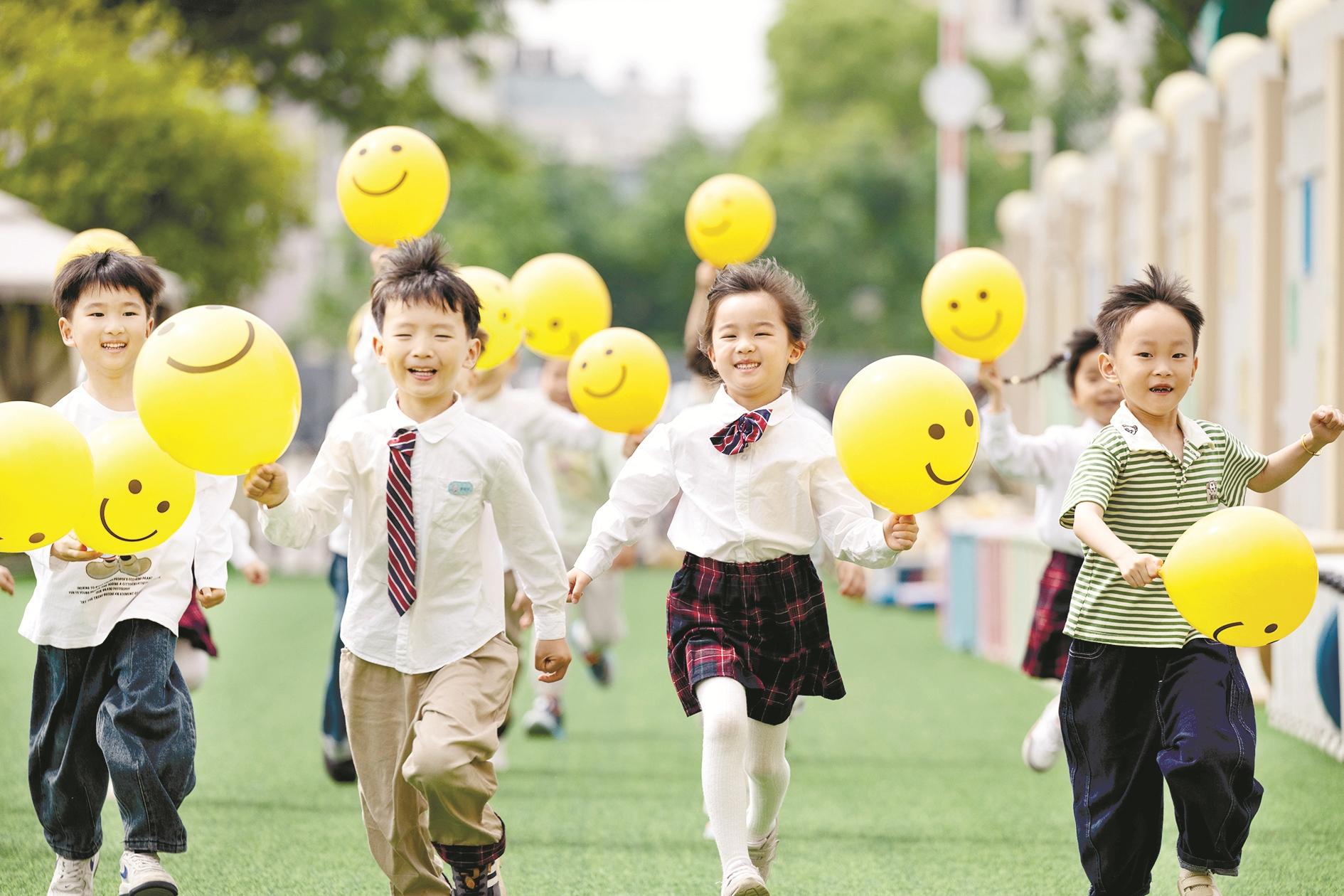 5月6日,浙江省湖州市长兴县实验幼儿园的孩子们手举笑脸气球,进行“笑脸赛跑”小游戏。5月8日是“世界微笑日”。微笑是无声的问候,微笑是人类最美丽的语言。