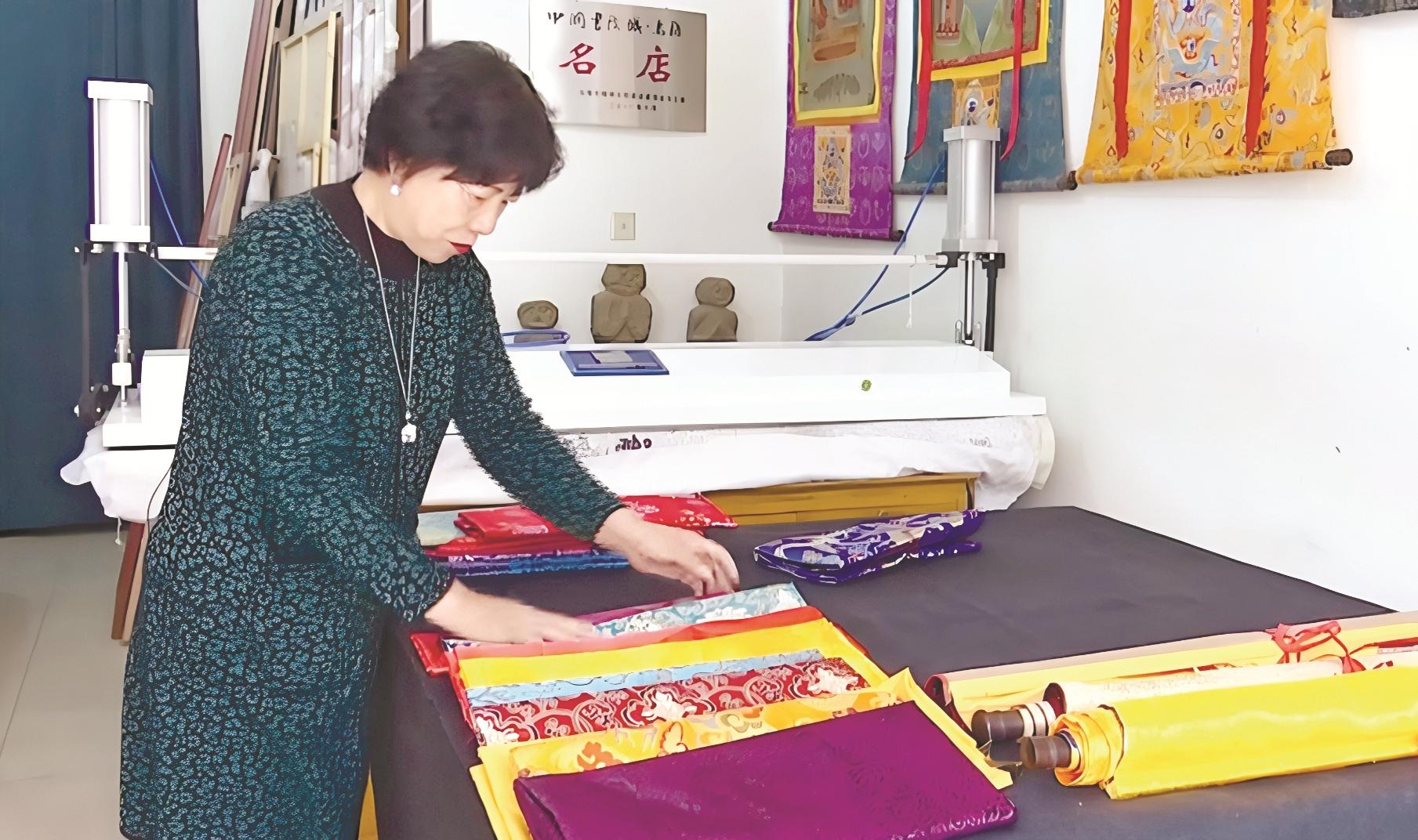 尽管大学毕业后从医,但她从未放弃对这门技艺的热爱,工作之余一直坚持装裱唐卡。2008年,为传承这项技艺,她和丈夫王志刚创办了韵悟斋文化传承店,专门从事唐卡装裱及字画装裱行业。