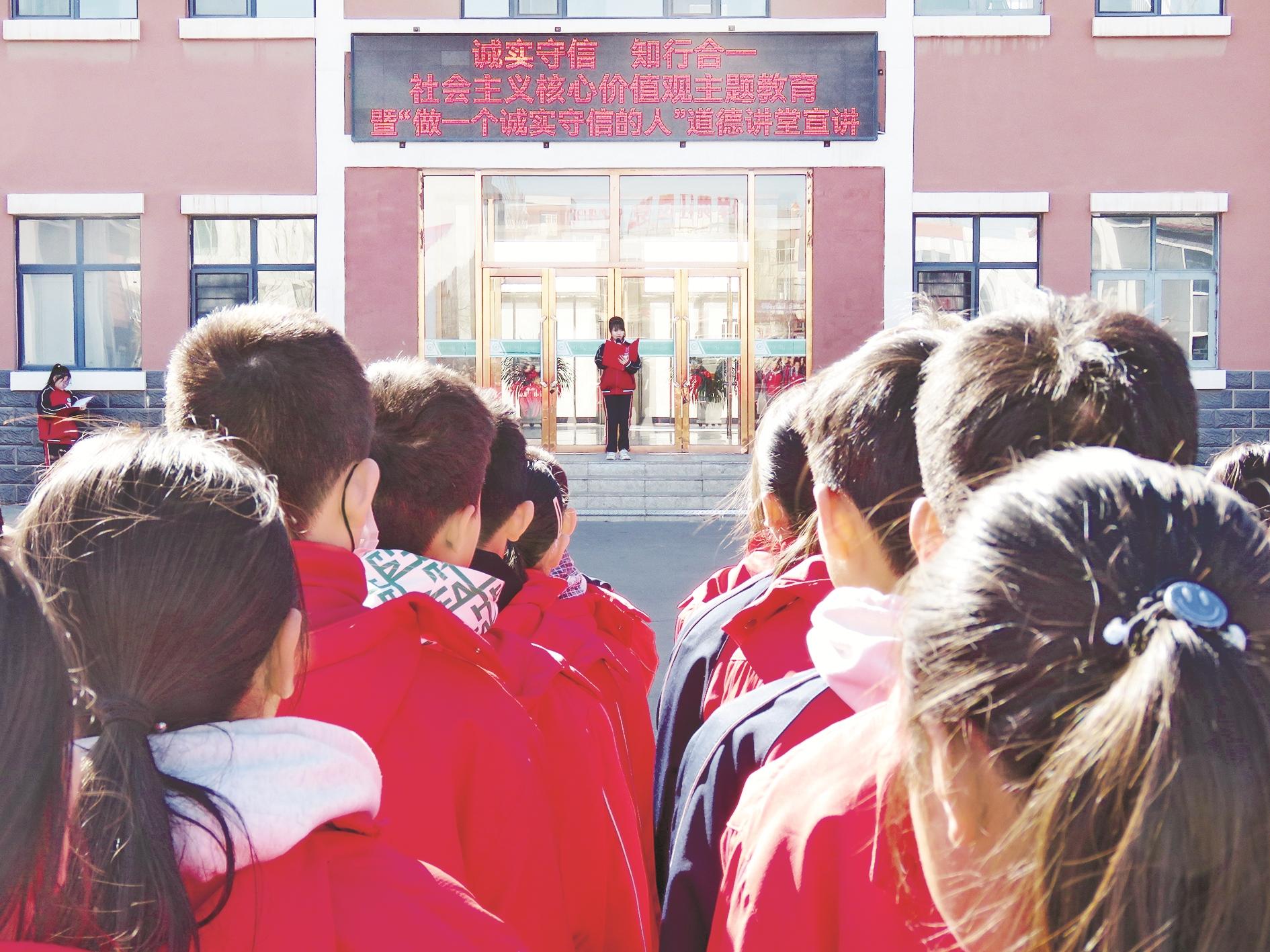 连日来,海南区西卓子山学校开展了一系列形式多样的诚实守信教育活动,激励学生从自身做起,在生活点滴中坚守诚信原则。 (段维娜 摄)