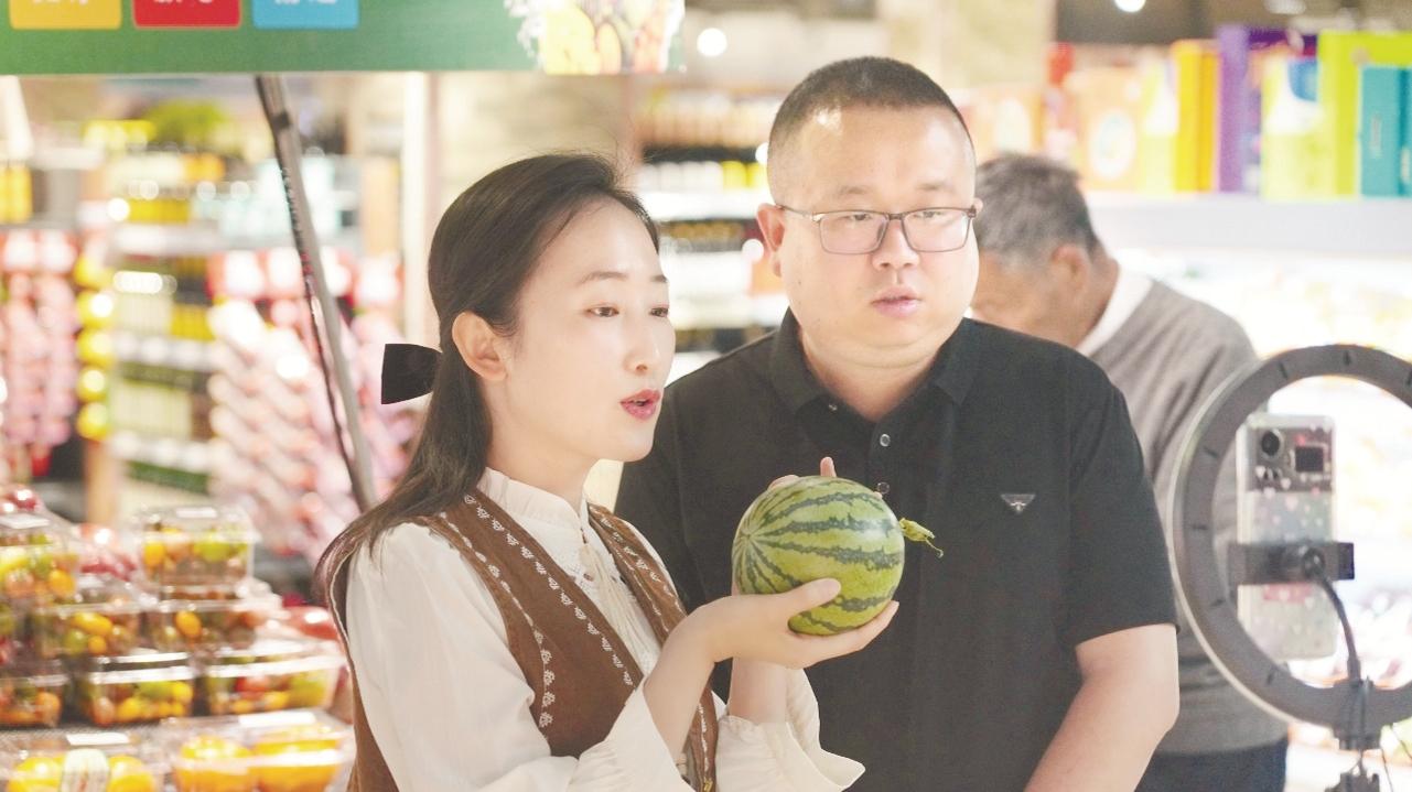 4月25日,乌兰淖尔镇泽园新村的草莓、西红柿、小吊瓜等特色农产品正式亮相乌达区东仙超市(朗峰店),该超市专门设立直供专区柜台,五颜六色的果蔬吸引了不少居民选购。