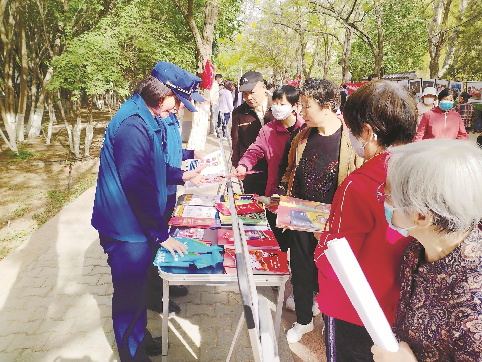 今年的5月12日是第17个全国防灾减灾日,乌海市防灾减灾救灾委员会办公室开展了2025年全市“5·12”防灾减灾日宣传活动。当日,在市人民公园,我市应急管理、消防、市场监管等相关成员单位向市民重点普及了交通安全、消防安全和逃生自救等知识。图为宣传活动现场。