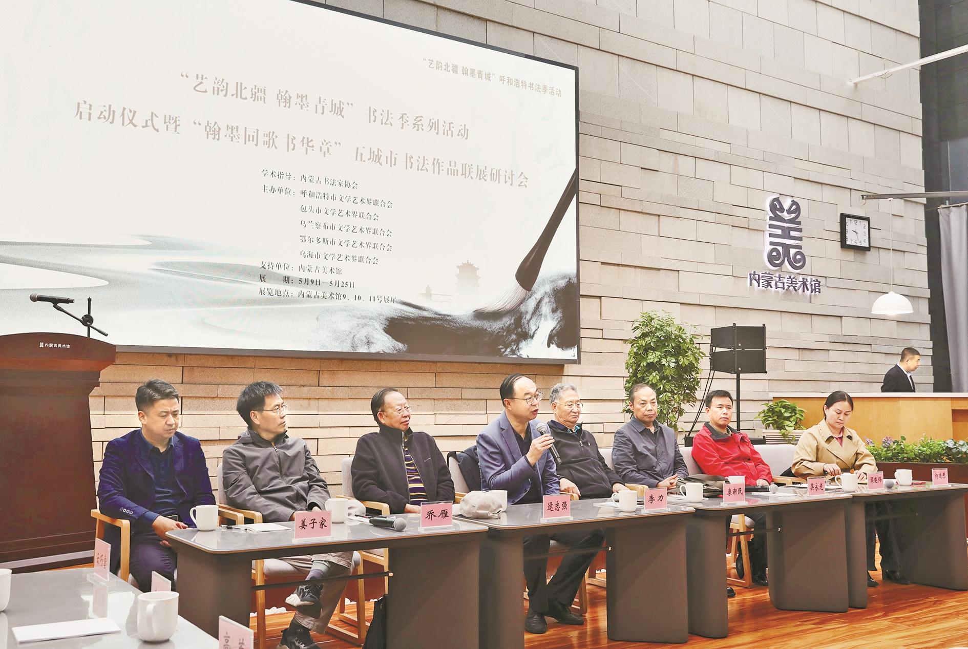 本报讯 (记者韩建慧)5月9日,“艺韵北疆 翰墨青城”呼和浩特书法季系列活动启动仪式暨“翰墨同歌书华章——五城市书法作品联展研讨会”在内蒙古美术馆举行。