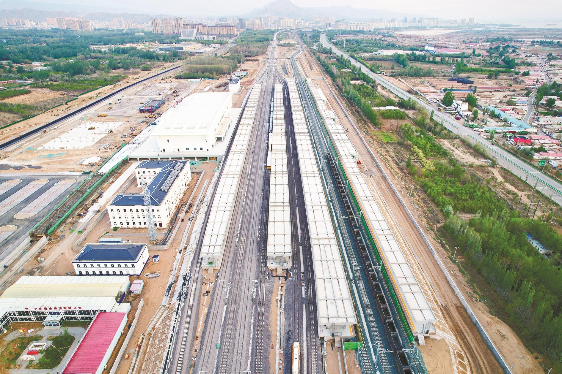 乌海站是包银高铁全线最大的新建站。站房整体设计为雄鹰展翅造型,地上2层、地下1层,建筑面积约10000平方米,旅客地道建筑面积约5795平方米。站场设计规模4站台11线,其中1、2站台为高速站台,3、4站台为普速站台;8至11线为包兰铁路,于2024年9月10日完成拨接;1至7线为包银高速铁路,于5月7日完成铺轨施工。
