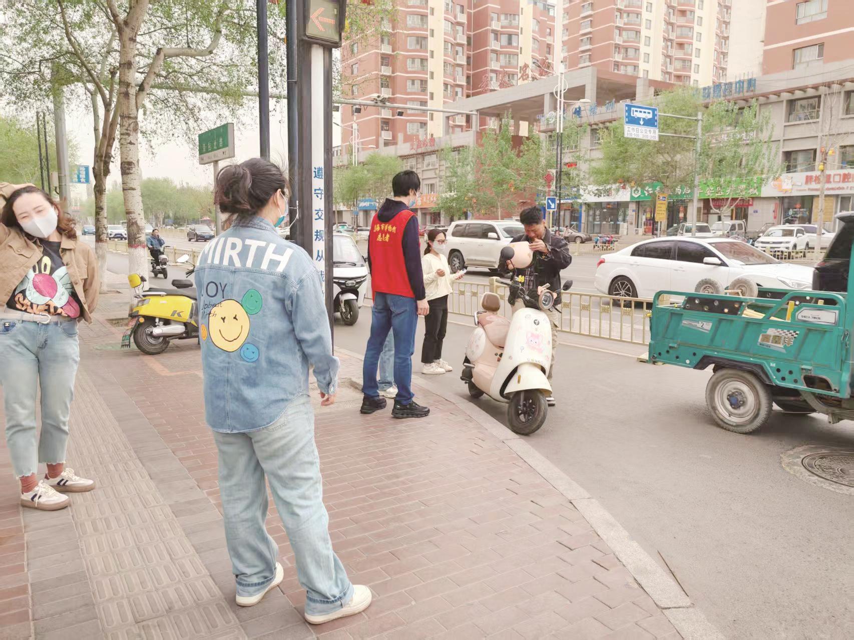 近日,海勃湾区海北街道黄河社区组织工作人员、志愿者开展了“文明交通劝导”宣传活动,劝阻不按规定道路行驶、不佩戴头盔等行为,并向他们发放宣传资料。社区工作人员表示,社区将持续加大道路安全知识宣传力度,充分发挥交通劝导的作用,营造规范、有序、畅通的道路交通环境,切实保障人民群众生命财产安全。 (张楚研 摄)