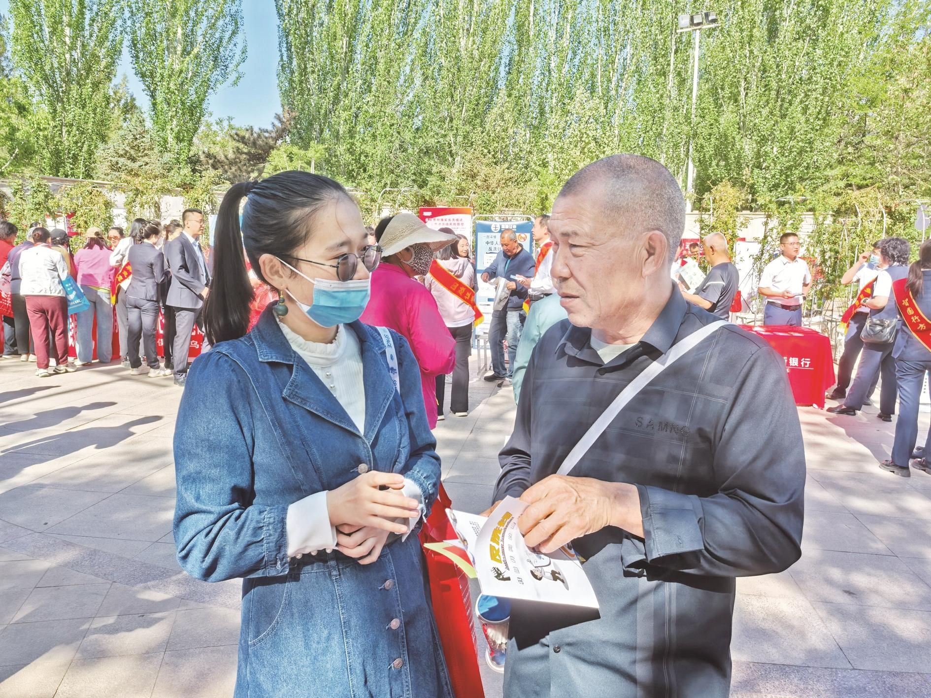 5月15日,中国人民银行乌海市分行联合市区两级公安机关组织辖内银行业、证券业、保险业金融机构深入乌海市人民公园开展反洗钱主题宣传。 (韩强 摄)
