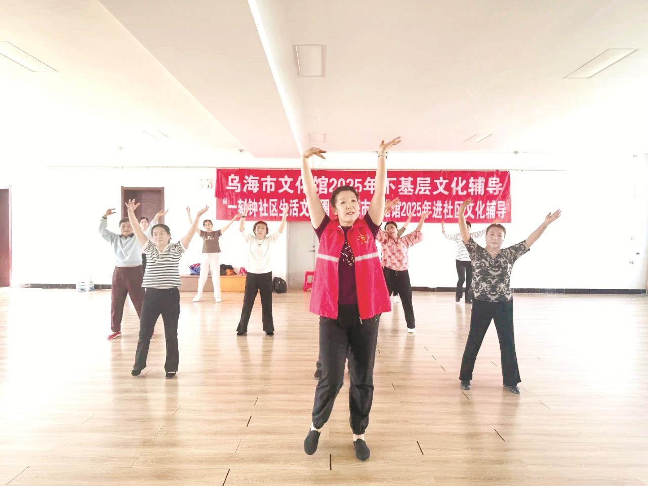 市文化馆积极整合公共文化资源,开展文化工作者服务支持艰苦边远地区和基层一线专项工作,推动优质文化资源下沉基层。自今年4月起,市文化馆选派3名优秀舞蹈编导,深入三区15个基层社区开展舞蹈集中排练培训。图为舞蹈编导老师指导基层舞蹈队队员。 (靳婧 摄)