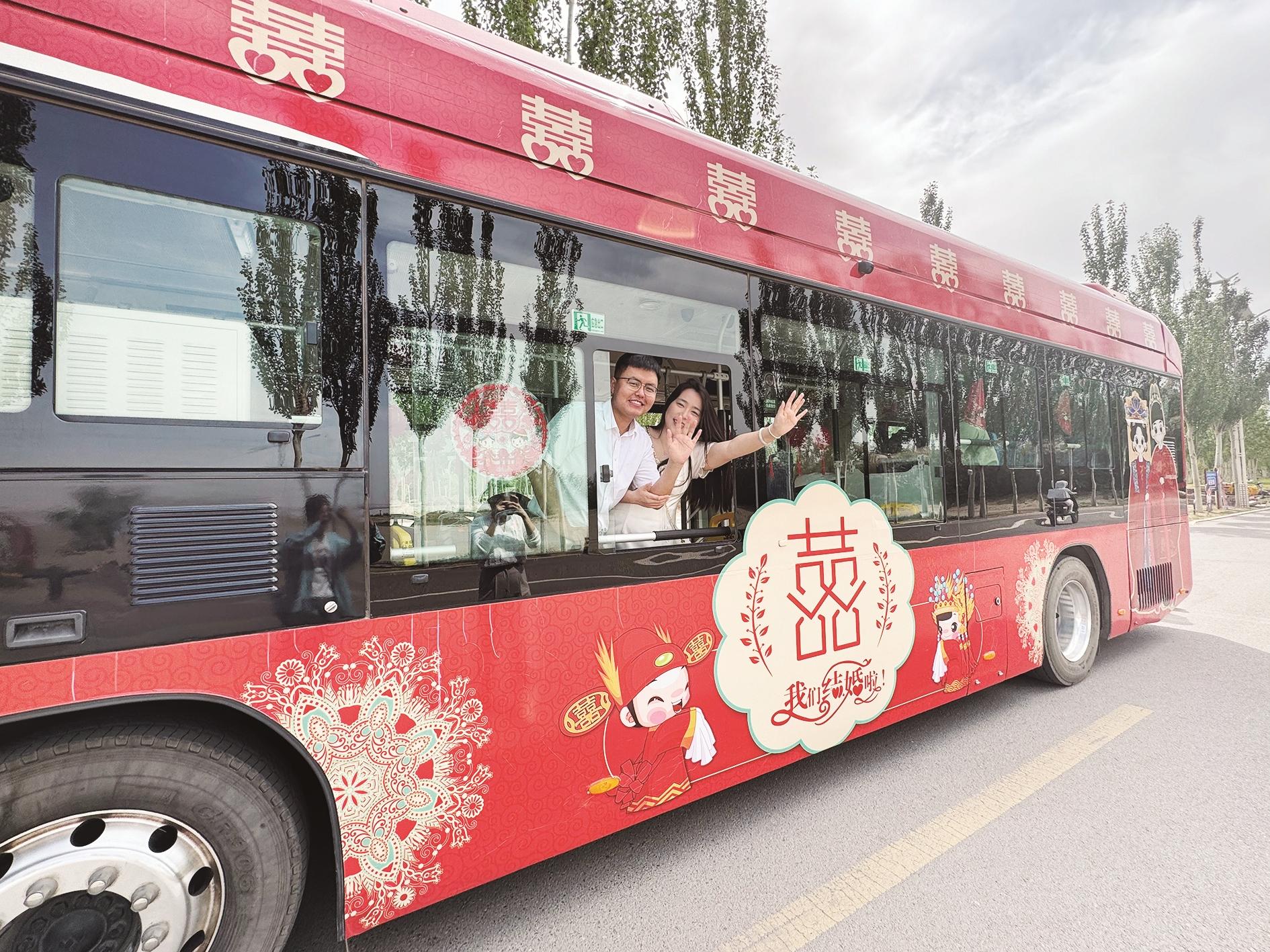 “我是6月1日举办婚礼,看到公众号上说新人可以免费租用公交车当作婚车,我第一时间报名。我觉得公交婚车非常新颖,而且传统婚车队伍往往要租多辆车才能容纳所有亲友,费用高又难协调,公交车一次性解决了所有问题,空间宽敞舒适,大家都能尽情享受这段旅程。”新人马宁说。