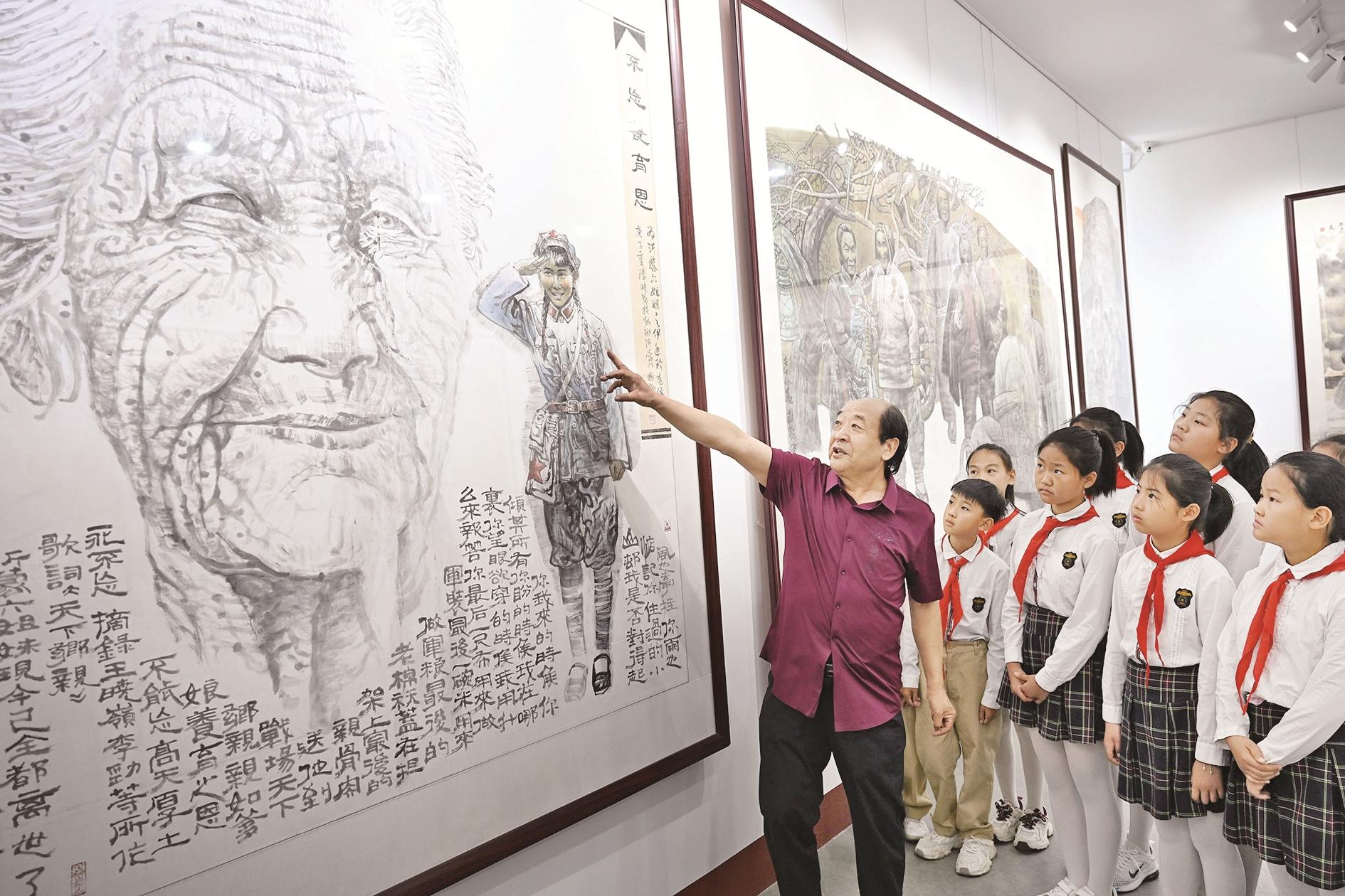 今年是中国人民抗日战争暨世界反法西斯战争胜利80周年,在沂蒙革命老区山东省日照市莒县,小学生们走进沂蒙画派研究院,学习绘画知识,欣赏绘画作品,聆听画作背后的沂蒙故事,感受沂蒙精神,接受爱国主义教育。