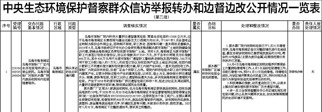中央生态环境保护督察群众信访举报转办和边督边改公开情况一览表