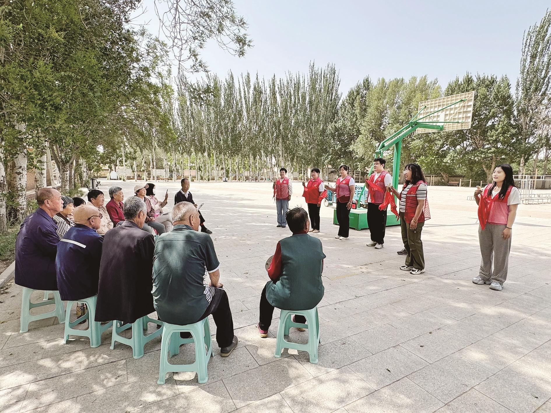 “竹板一打噼啪响,人民感谢共产党;丰功伟绩党恩长,百年峥嵘多辉煌……”5月28日,海南区巴音陶亥镇万亩滩村小广场上响起清脆的快板声,村“两委”成员打着手中的快板,通过简明的板词、嘹亮的声音、欢快的节奏,为现场群众送去了一场丰富的文化大餐,把党的好政策传播到群众的心坎里,让党的创新理论更加深入人心。