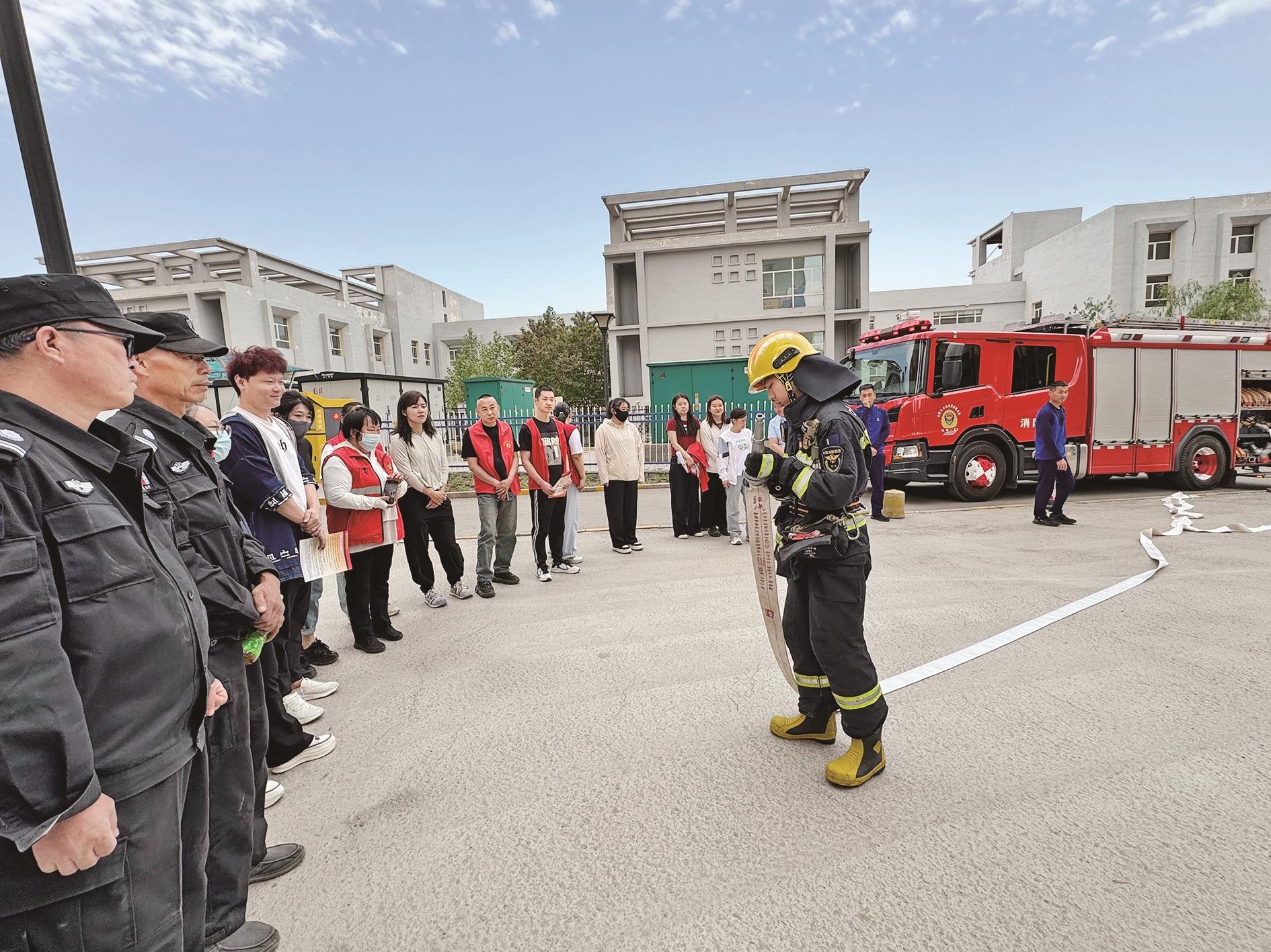 为进一步提升辖区居民的消防安全意识和应急处置能力,近日,海勃湾区海北街道黄河社区联合海勃湾区消防救援大队在启德家园小区开展了消防演练活动。 (段维娜 摄)