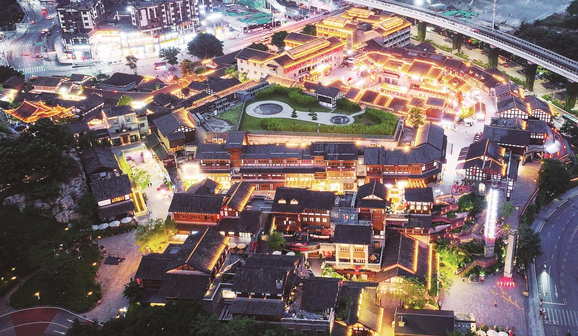 华灯初上,位于重庆市沙坪坝区的磁器口古镇流光溢彩,别有一番韵味。