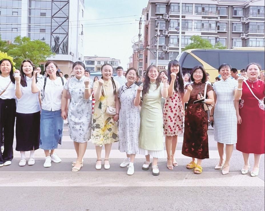 在市第二中学考点外,市第一中学数十位教师站成一排为学生高喊加油。“高考是学生人生中的重要节点,作为老师,我们希望能与他们并肩作战,现场给孩子们加油鼓劲。”市第一中学教师宋丽丽说。