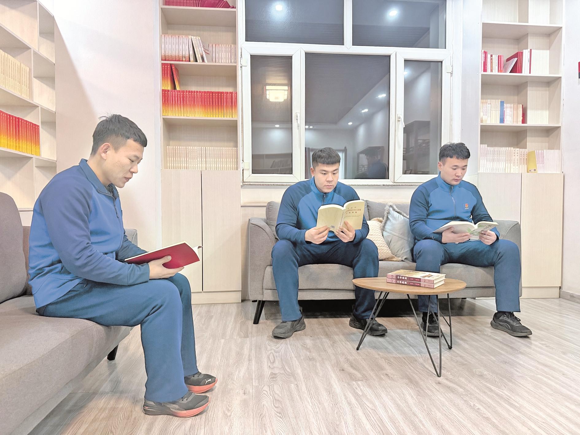 近日,乌海市消防救援支队积极开展读书学习活动,旨在鼓励全体人员以书为友,养成良好的阅读习惯。图为乌海市消防救援支队光明路特勤站消防员在闲暇时间阅读。 (张靖爽 摄)