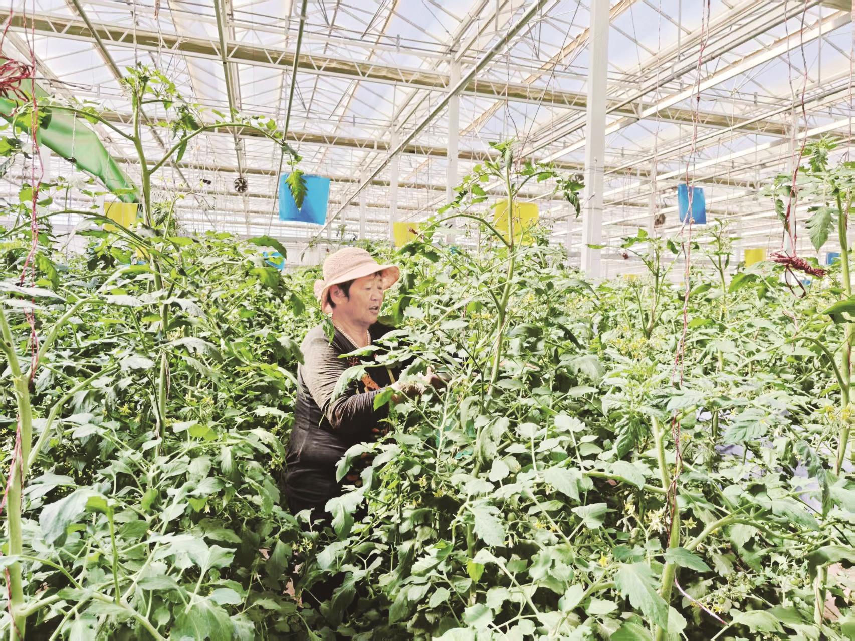六月的大棚里生机盎然,累累果实缀满番茄秧,一串串小番茄青涩中已透出点点诱人红晕。在乌达区乌兰淖尔镇泽园新村农旅综合体“名优特新”示范基地,村民宋莲莲正熟练地为番茄花授粉。她笑着对记者说:“去年入股分红就尝到了甜头,今年村里的三个集体经济项目,我们全家入了5股。”这沉甸甸的信心,源自泽园新村集体经济的蓬勃发展。