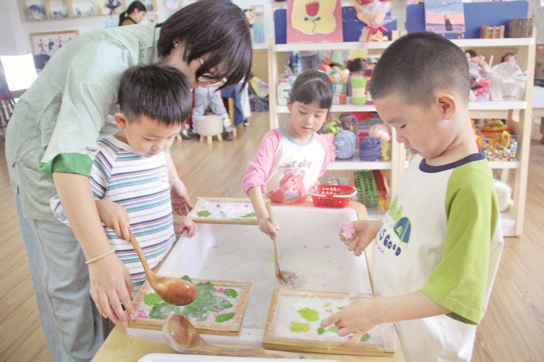 近日,海勃湾区第十三幼儿园组织幼儿体验造纸术,增强幼儿动手能力,深入了解中华优秀传统文化。 (陈洋 摄)
