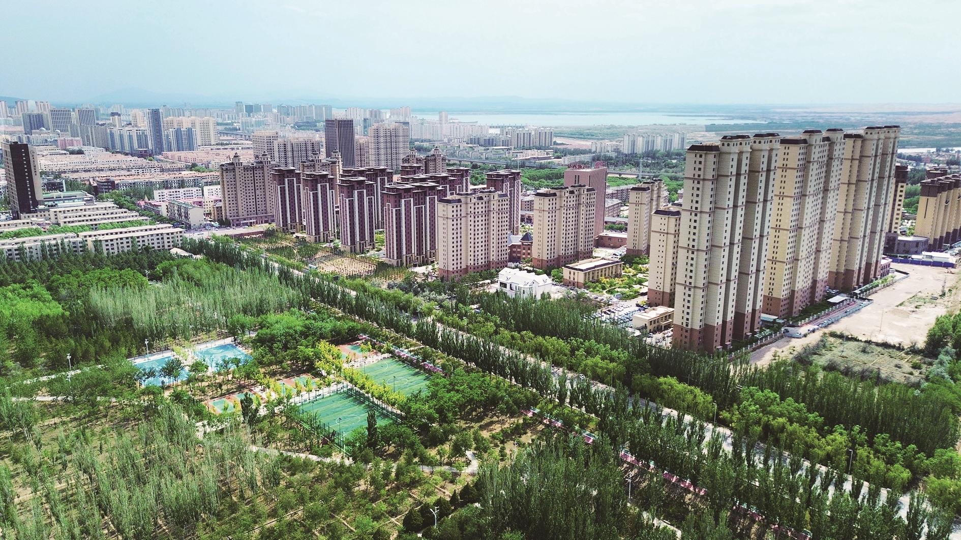 近年来,我市聚力提高城市宜居品质,加快推进美丽乌海建设,改造提升园林品质,推进口袋公园建设,着力打造小而美、小而优的精品城市。图为海勃湾区城区一角(无人机照片)。(赵政宇 摄)