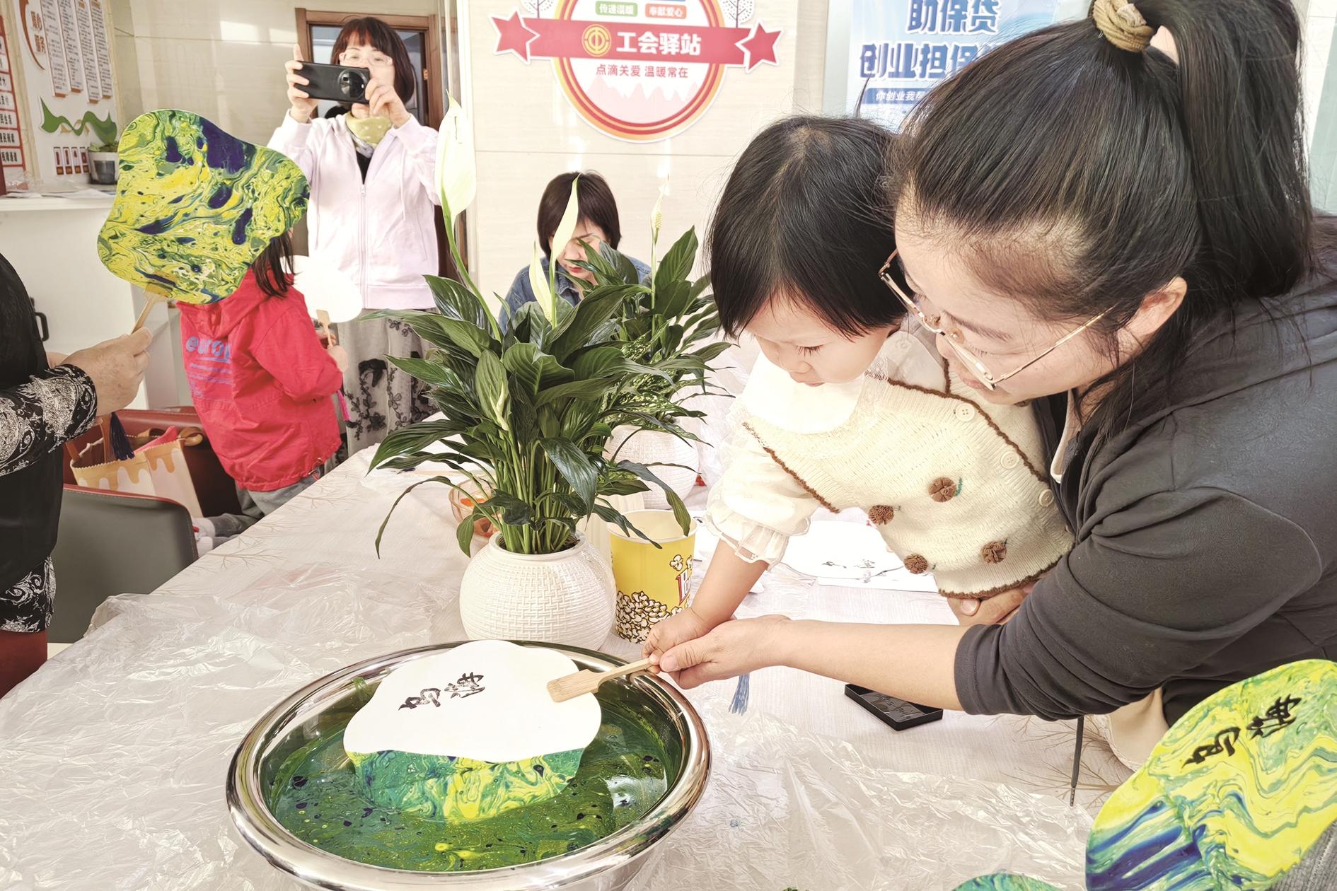 近日,海勃湾区滨河街道白楼社区新时代文明实践站联合乌海银行开展了“‘漆’彩缤纷 制‘扇’至美”漆扇制作活动。居民们在志愿者的指导下,经过配色、稀释、调漆、沉扇等环节,制作出一幅幅色彩斑斓的漆扇作品。