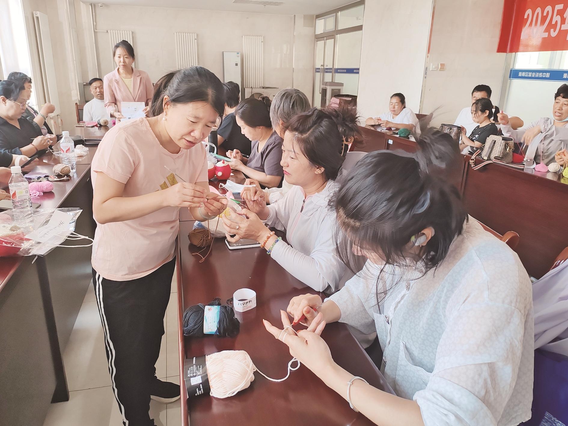 6月9日,在海南区就业训练中心,残疾人学员齐聚一堂,跟着老师学习钩针编织。据了解,这是市残疾人联合会举办的2025年钩针编织培训班,该课程已在海勃湾区、乌达区开展。