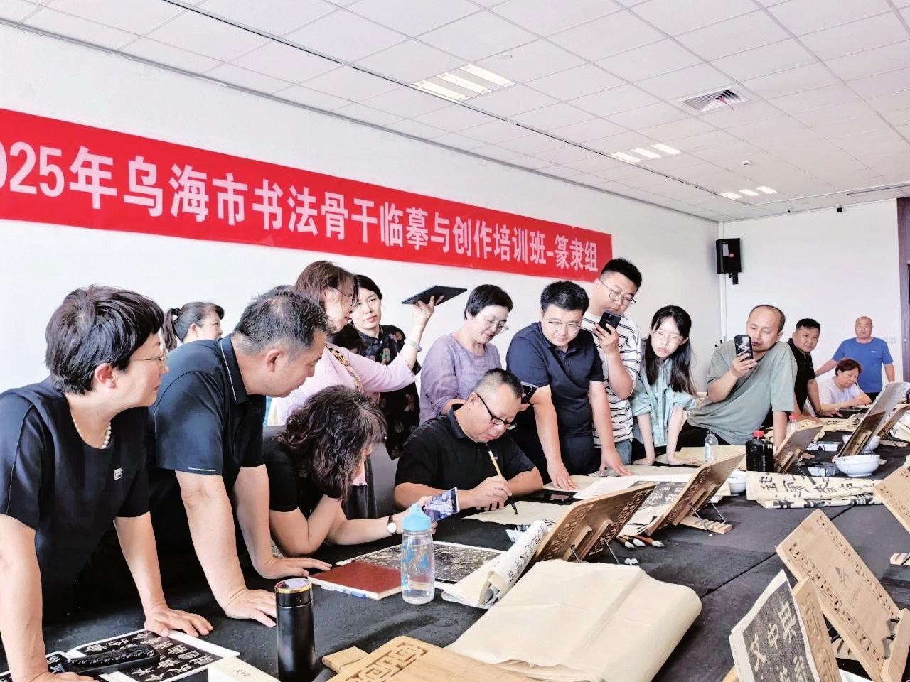 6月6日至8日,市书法骨干临摹与创作培训班在当代中国书法艺术馆开课,100余人参加培训。此次培训分为行草、篆隶、楷书3个小组,课程采用理论讲解与实践操作相结合的教学方式。老师从各书体的历史渊源、笔法技巧、结构布局及作品赏析等内容,深入浅出地为学员们进行讲解和示范,让学员们对书法创作有了更为深入的理解和认识。 (靳婧 摄)