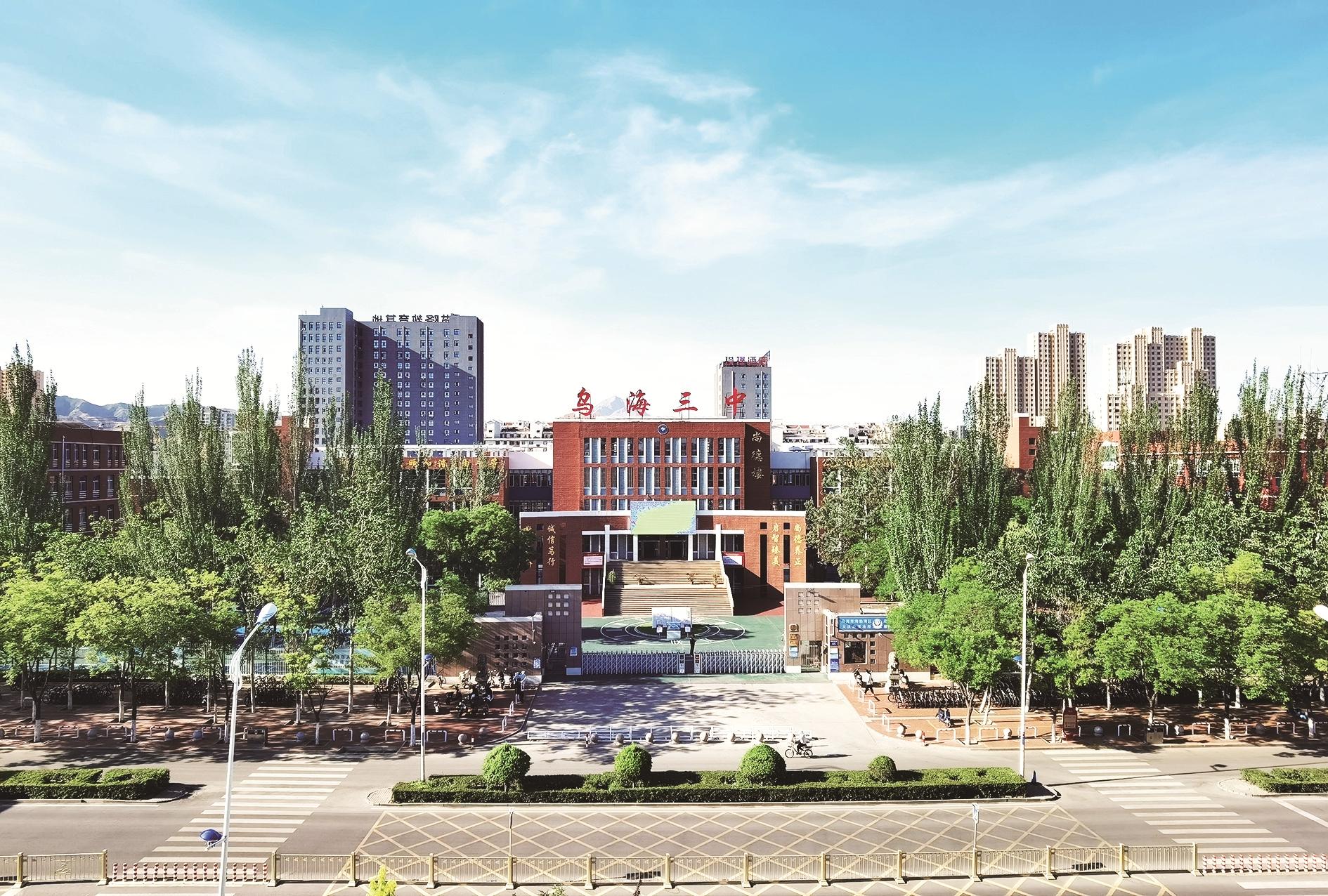 市第三中学于1980年建校,次年9月正式招生,共20个班,其中有职业高中4个班。当时只有4栋平房教室和一栋土房作为老师的办公室。学校开设4个高中班,6个初中班,由于教室不足,初中班只得借原乌海市民族中学的教室开课。1983年,学校又新建了4栋平房教室。