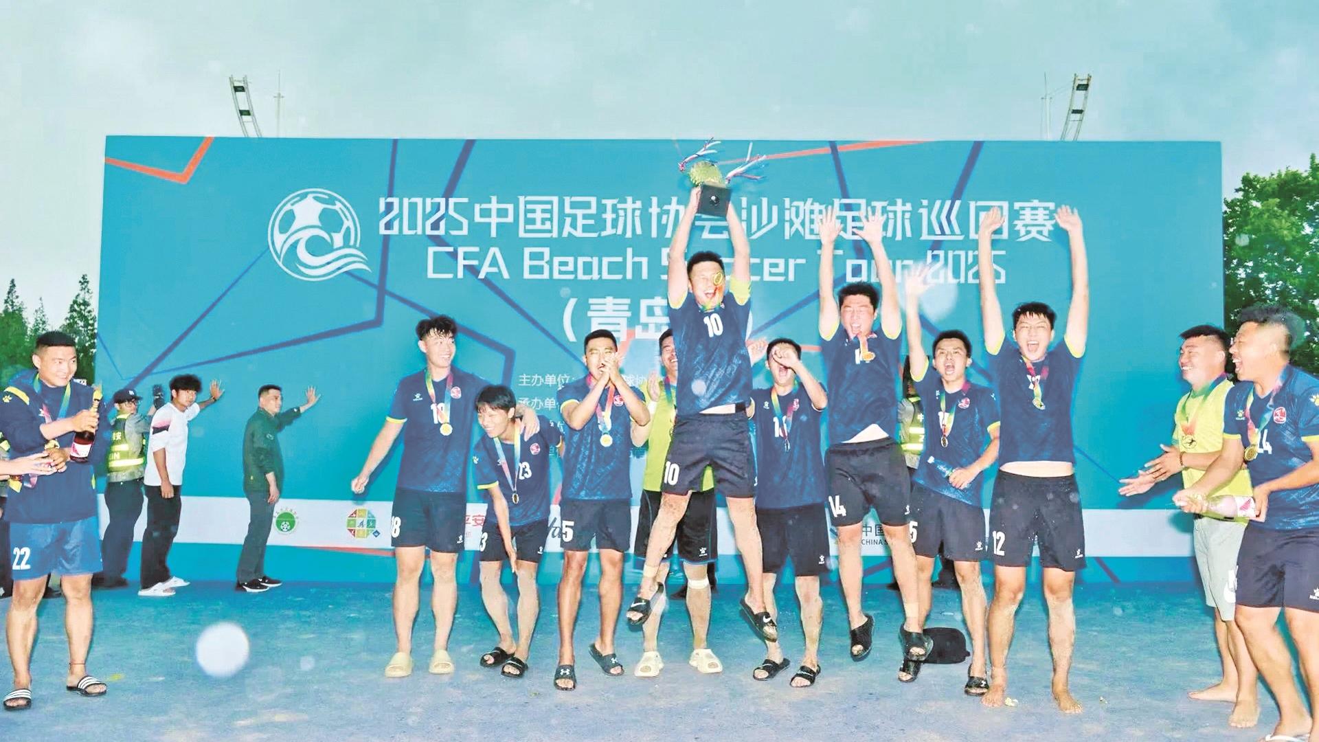 本报讯 6月15日,2025中国足球协会沙滩足球巡回赛·青岛站比赛在山东省青岛市落幕。乌海沙滩足球队在决赛中以5比4力克东道主青岛市代表队,成功夺得本站比赛冠军。