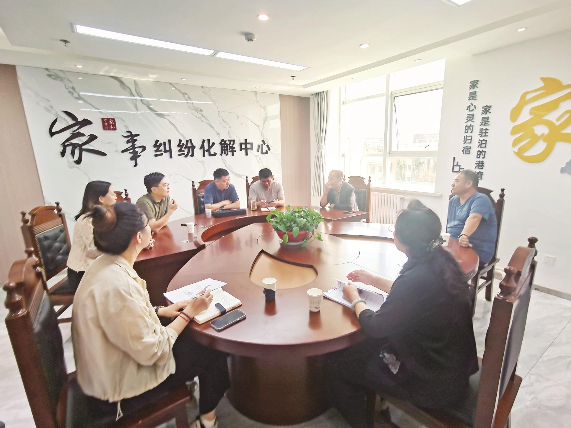 在多元化解区,不同场景的矛盾化解工作正同步开展。在家事纠纷化解中心,一位巴音陶亥镇居民诉说着房产纠纷,调解员与相关部门负责人围坐在一起,认真倾听纠纷经过后,便开始商议妥善的解决方案;在劳动仲裁庭,一起农牧民工工资支付纠纷正在进行速裁;在交通事故调解室,一起交通赔偿纠纷的调解工作也在有序推进……调解员王琴表示,这样高强度、高频次的调解场景在中心已是常态。