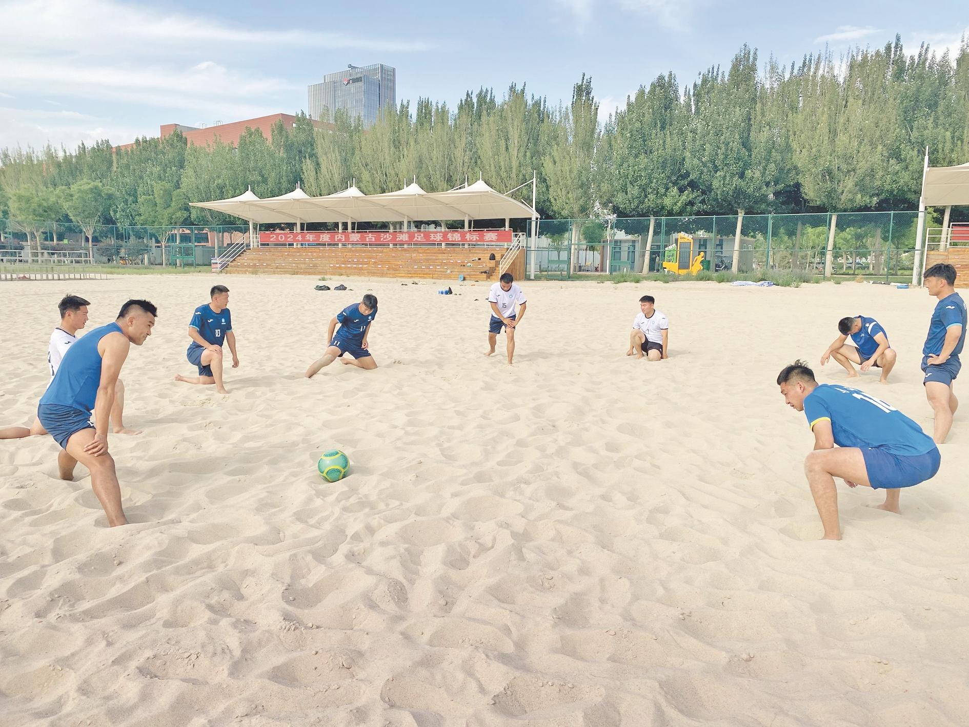 近日,乌海沙足队全面进入高强度集训状态,通过强化身体素质、专项训练,有效提高队员速度、耐力等竞技水平。队伍积极备战即将到来的第十五届全国运动会和2025中国足球协会沙滩足球巡回赛。 (赵荣 摄)