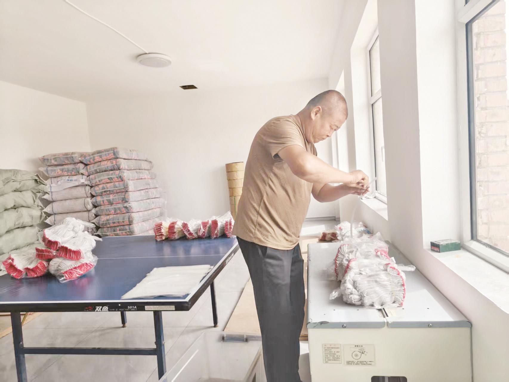 而在一路之隔的手套生产车间,“哒哒哒”的机器声不绝于耳。由乌海军分区和海南区人武部共同出资援建、废旧教室改造而来的工厂内,四台智能手套机全速运转。46岁的村民刘忠熟练地操作着机器,一批刚下线的手套整齐码放在旁等待装车。“自从村里建了这厂子,家门口就能上班,每年多挣2万多元!”刘忠家种着52亩田地。“自从高标准农田改造后,播种施肥都是水肥一体,农活省心不少。这份家门口的工作,让我既能贴补家用,又能照顾家庭。”刘忠说。这个村集体领办产业的标杆,日均产量已达800双,去年为村集体增收5.5万元。“别看现在规模不大,销售渠道稳着呢!我们有信心让这小厂子变成村里发展的强引擎。”王锁平信心满满。