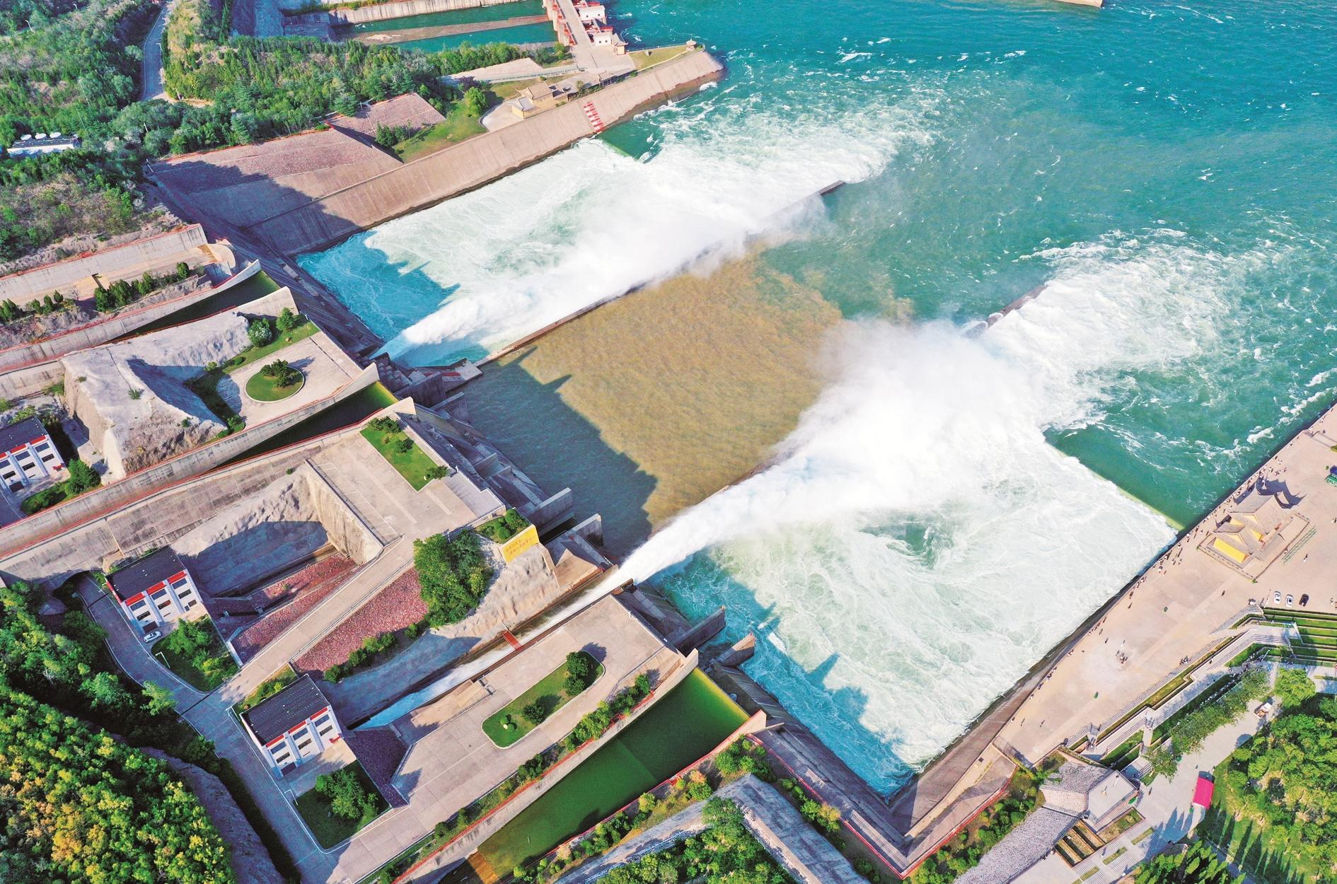 这是6月23日在河南济源拍摄的小浪底水利枢纽工程调水调沙现场(无人机照片)。
