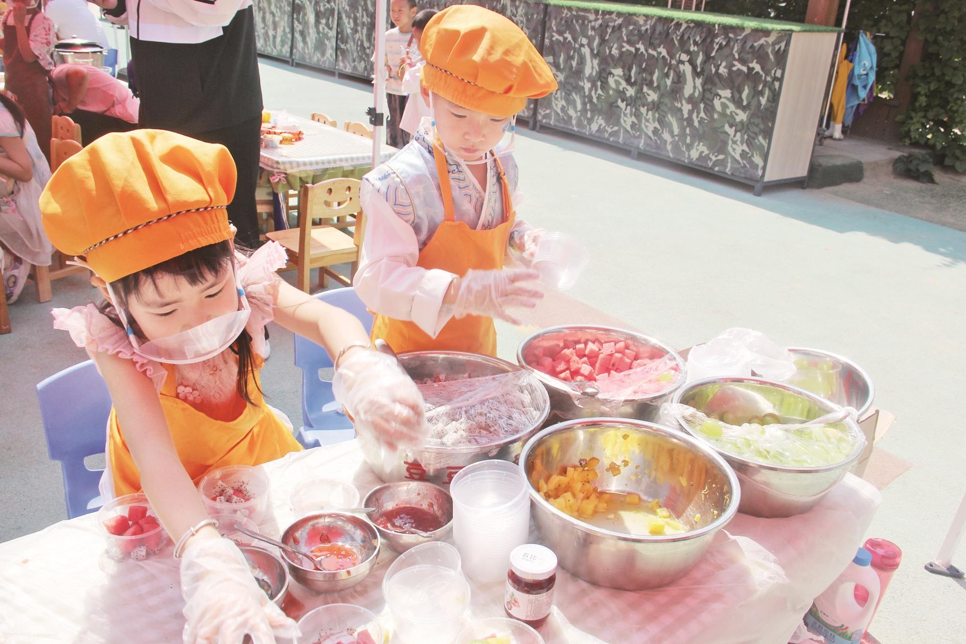 近日,海勃湾区第五幼儿园开展了“杜绝舌尖上的浪费”主题教育活动,让幼儿在实践中懂得勤俭节约。图为幼儿参与制作美食。 (陈洋 摄)