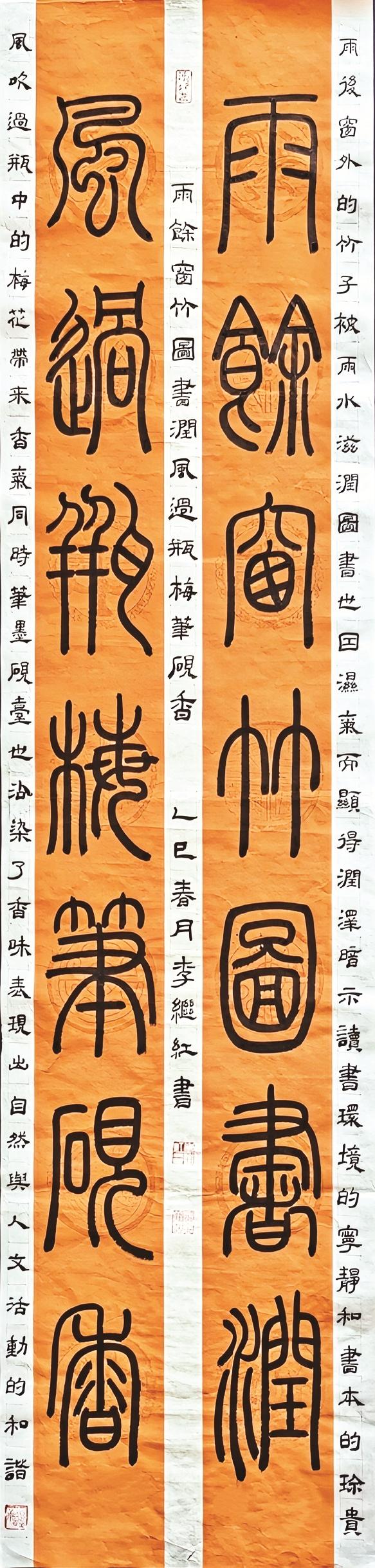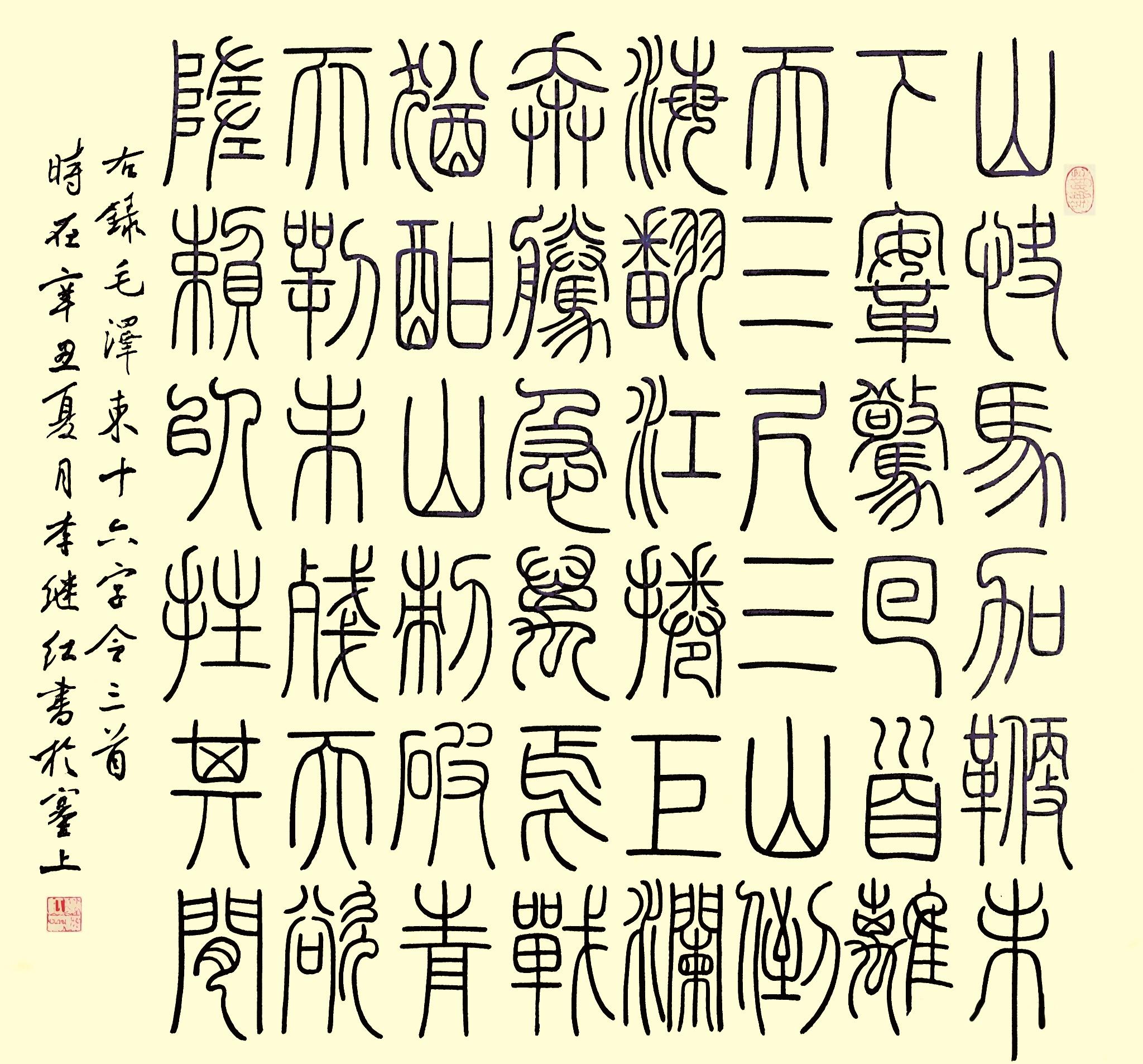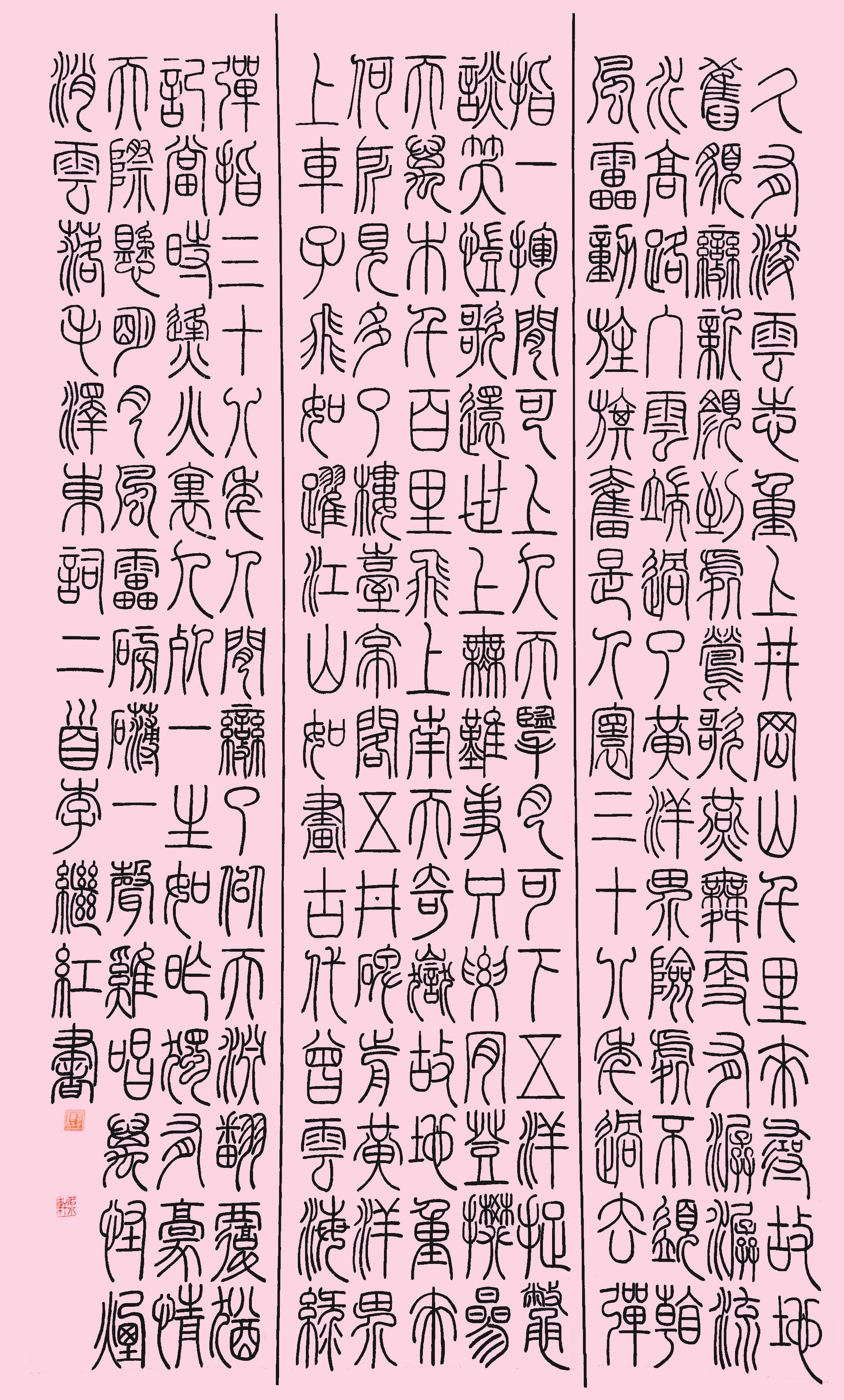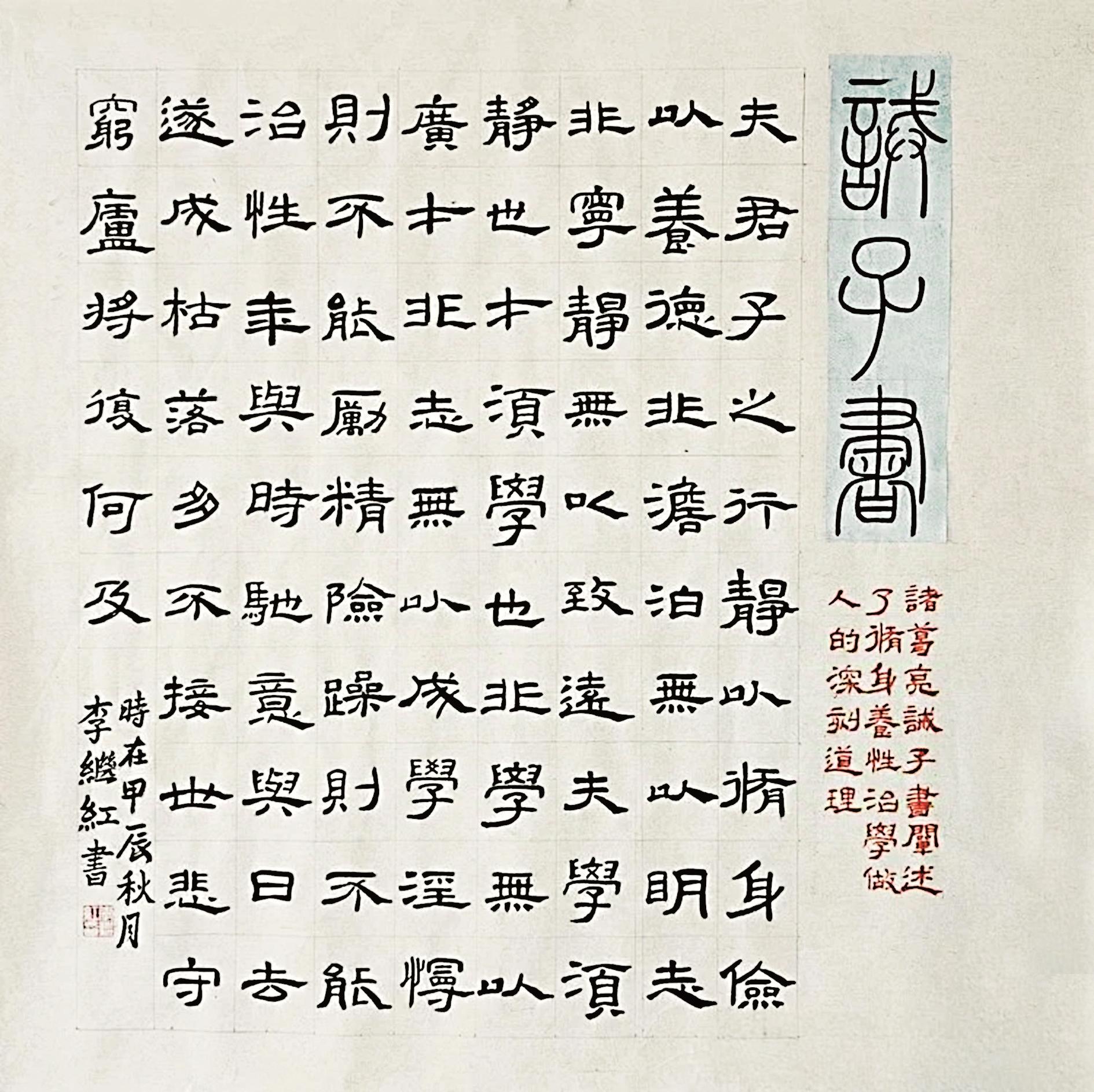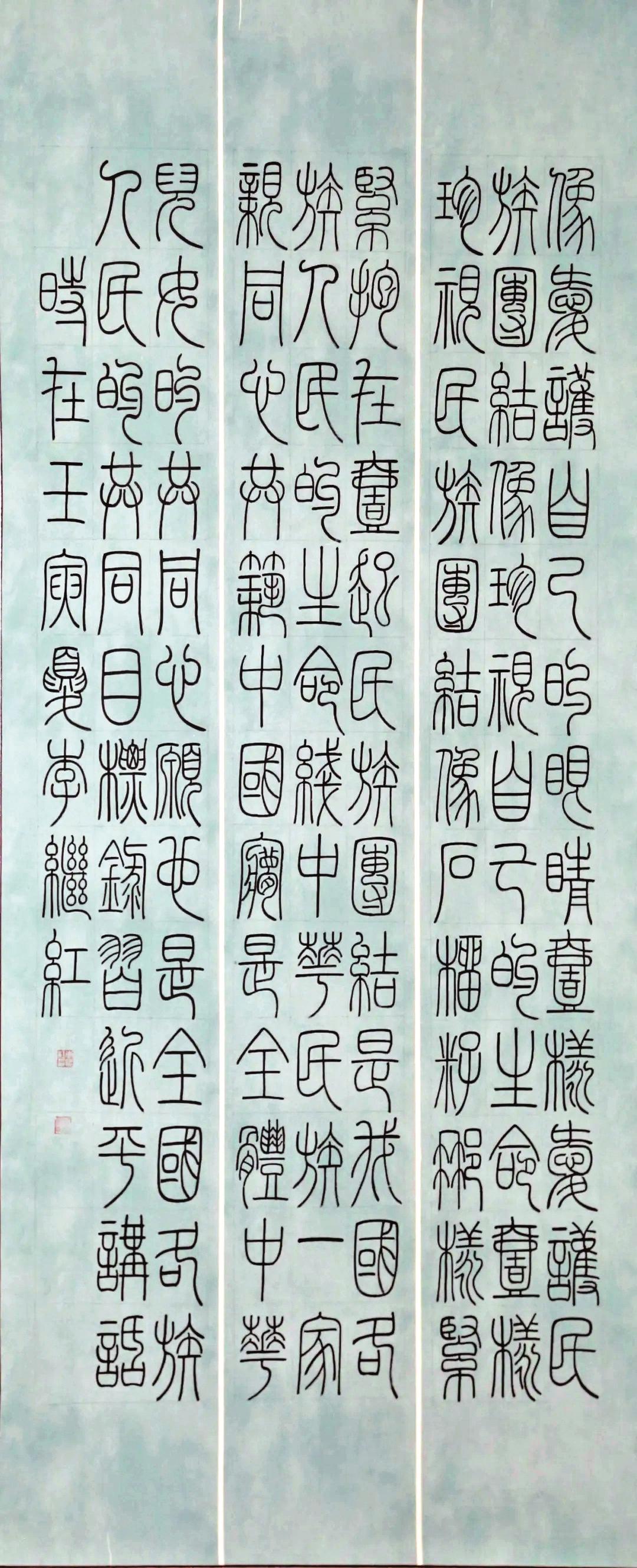 李继红在书法家李玉芳老师的系统指导下,从隶书入门,逐渐了解中国书体的演变历程。随着学习的深入,她对篆书产生了浓厚兴趣,开始研读《说文解字》《说文部首》等书籍。她说:“那个阶段,为了学好书法,我一次课程都没耽误过,无论是每周的集中课程、每月的大课,还是晚间的自主练习,我都坚持不懈。”就是靠着这样的一股子钻劲,她的书法水平稳步提升。