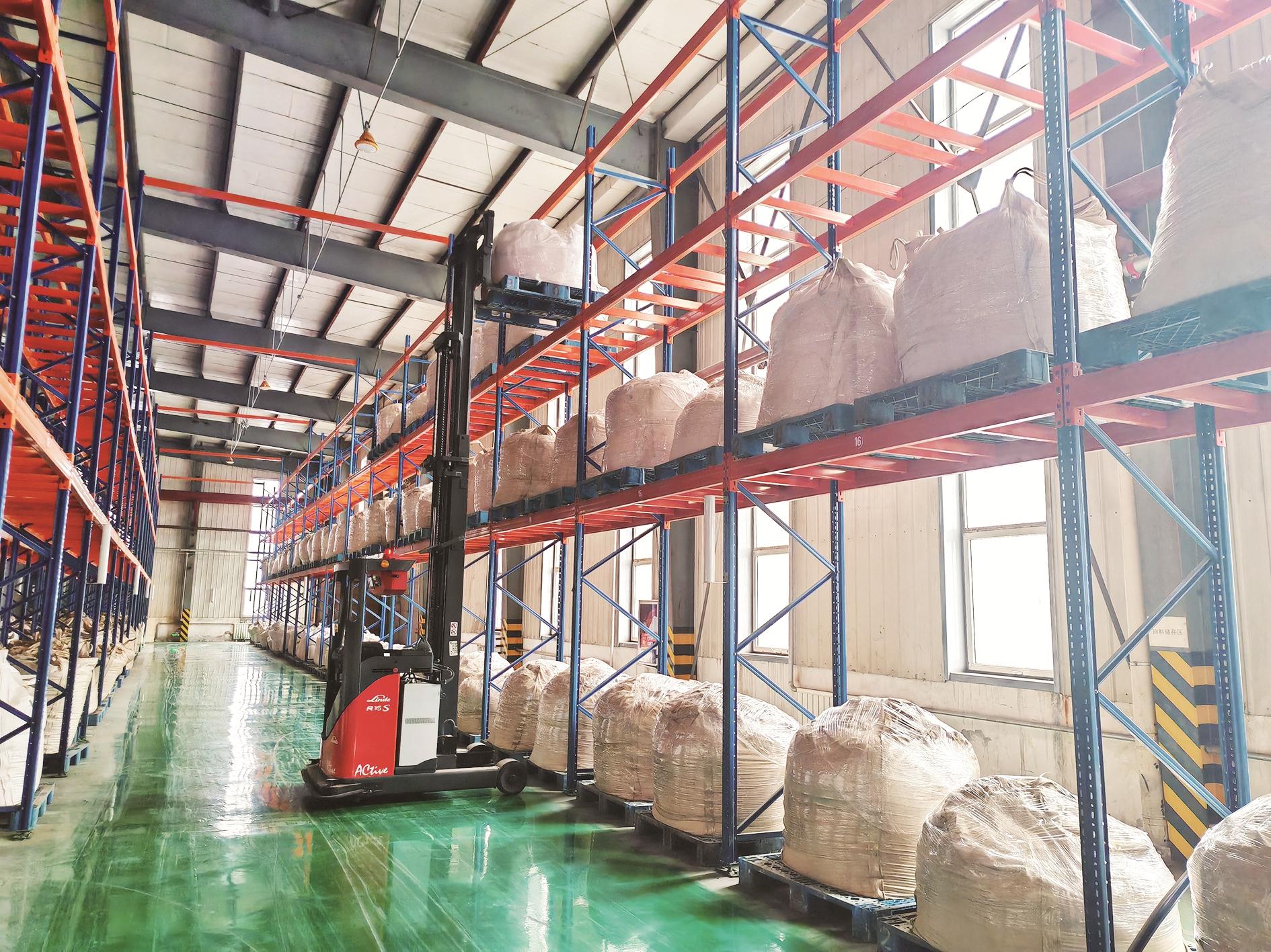 近年来,我市工业企业加快实施智能化改造,以数智技术赋能传统产业转型升级。图为位于乌海乌达高新技术产业开发区的内蒙古源宏精细化工有限公司智能仓库内,无人智能叉车在搬运产品。