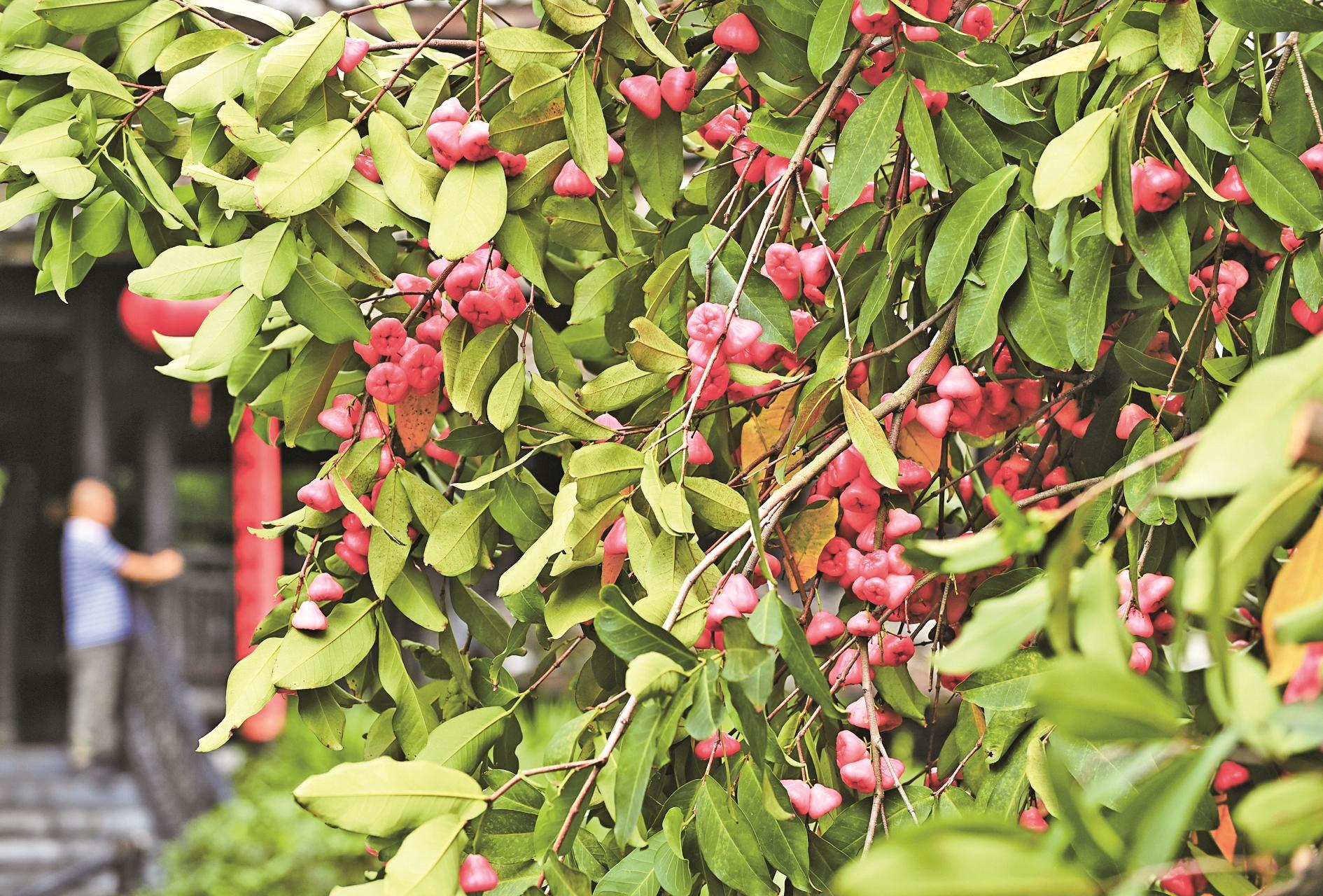 这是6月29日在南宁市古城路拍摄的结果的莲雾树。
