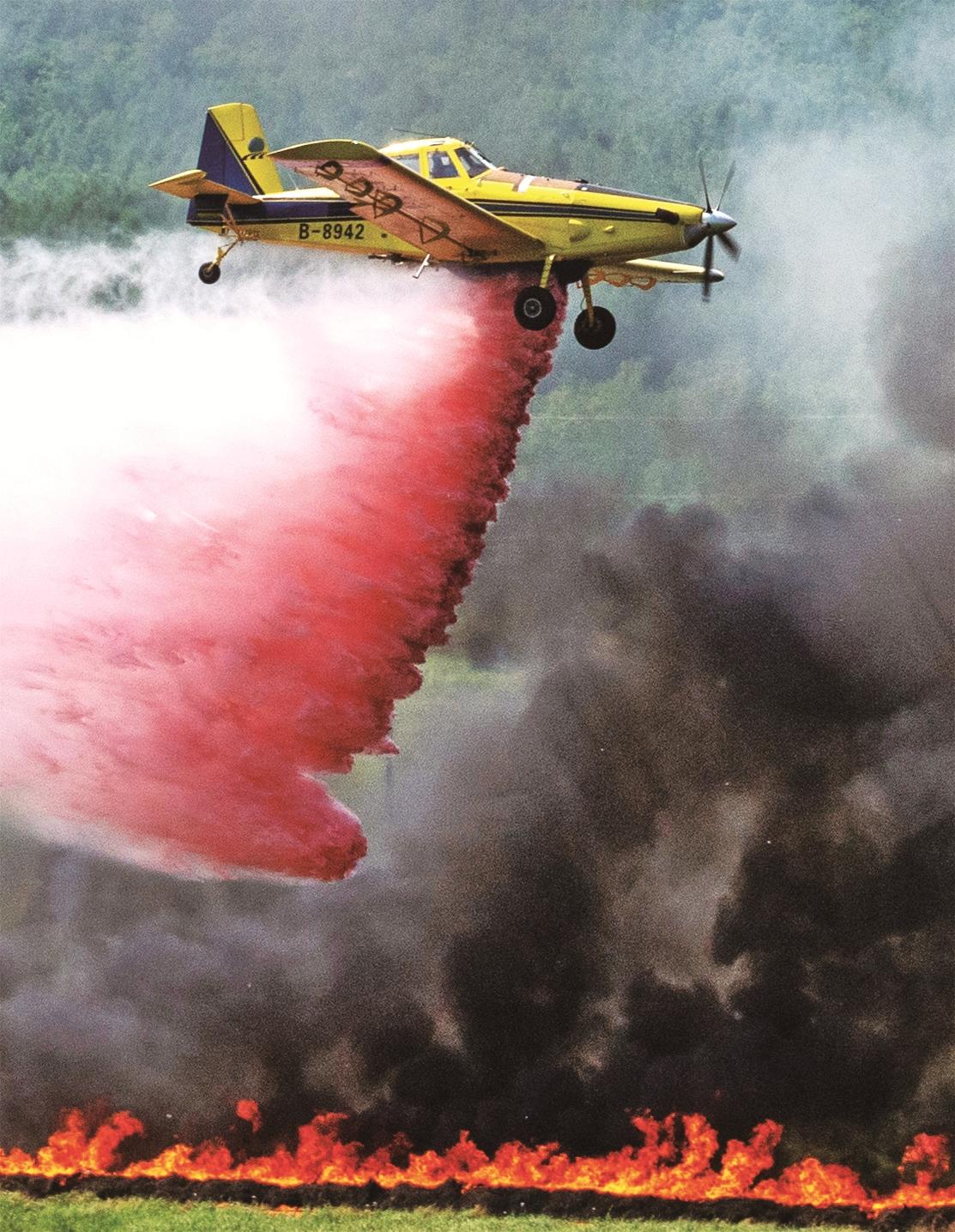 6月24日,“应急使命·2025”原始林区重特大森林火灾扑救演习在黑龙江省大兴安岭地区举行。在演习现场,一架飞机喷洒灭火剂压制火势。新华社记者 刘梦琪 摄