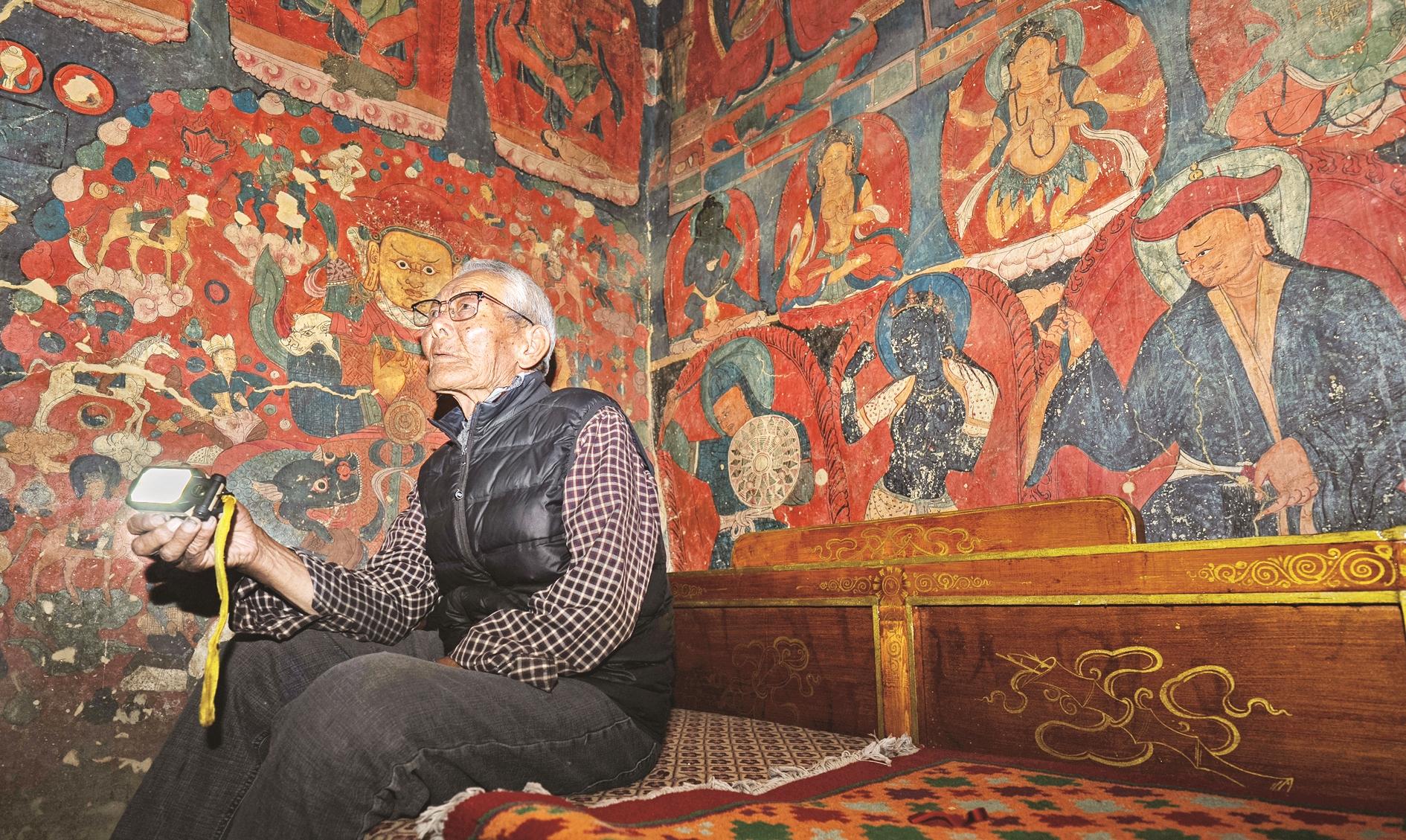 6月24日,仁增旺扎在石窟内检查是否有渗水、坍塌等风险。今年77岁的仁增旺扎家住西藏阿里地区札达县东嘎村皮央组。他的家与皮央石窟仅咫尺之遥,2002年,仁增旺扎成为当地首批群众文保员。此后,他二十余年如一日承担石窟的文物保护和对游客的讲解工作。新华社记者 丁增尼达 摄