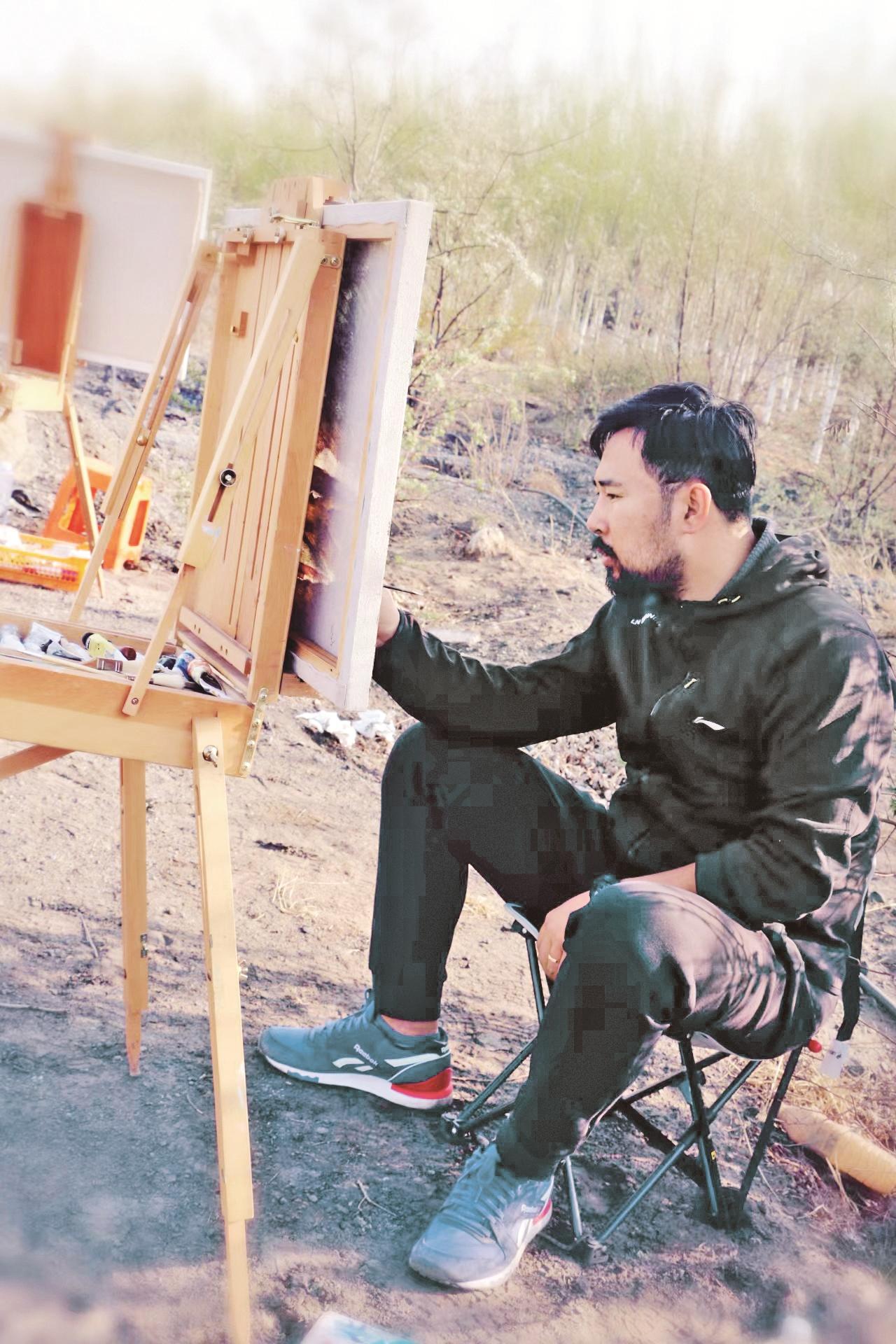 回顾过往,美术就是郎彪人生的敲门砖,让他的人生发生了重大改变。高中时,他的数学成绩非常差,为此,还专门从初中数学开始重新学起,但仍不见起色。即便如此,他也没有放弃,努力汲取文化知识,最终以文化课470分的成绩考入内蒙古大学艺术学院美术系美术教育专业。“当时最有意思的是,很多人认为我们仅需很低的分数就能上大学,特别容易,其实并非如此。”郎彪说,“同样的时间里,我们需要付出双倍努力,不停地画画的同时,还要挤出时间学习文化课,一样是在书山题海中熬过,做的卷子不比普通考生少。”