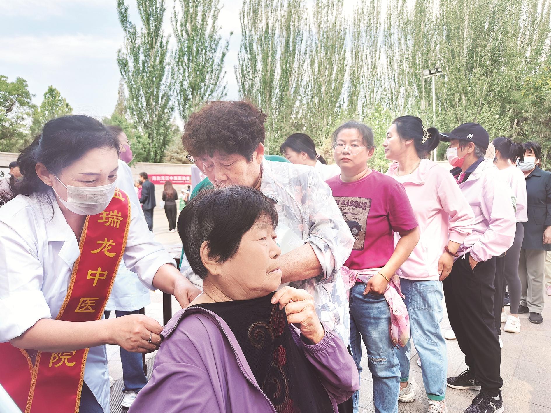 近日,海勃湾区卫生健康委员会在市人民公园北门广场开展了健康素养宣传月线下活动,我市各医疗机构的内科、外科、妇科等多科室专家坐诊,一对一解答高血压、糖尿病等健康问题,定制专属治疗、用药方案,为群众送去健康。